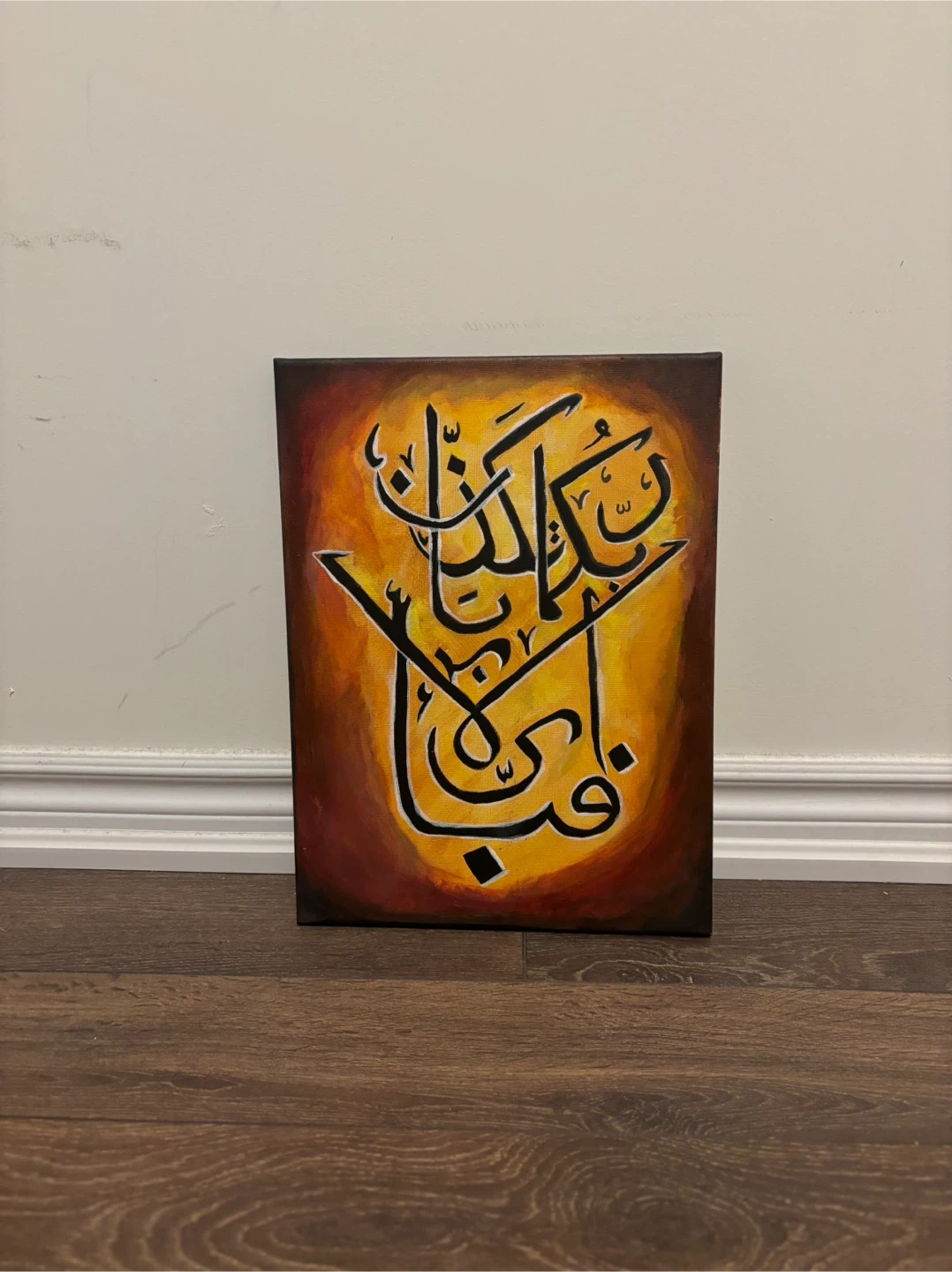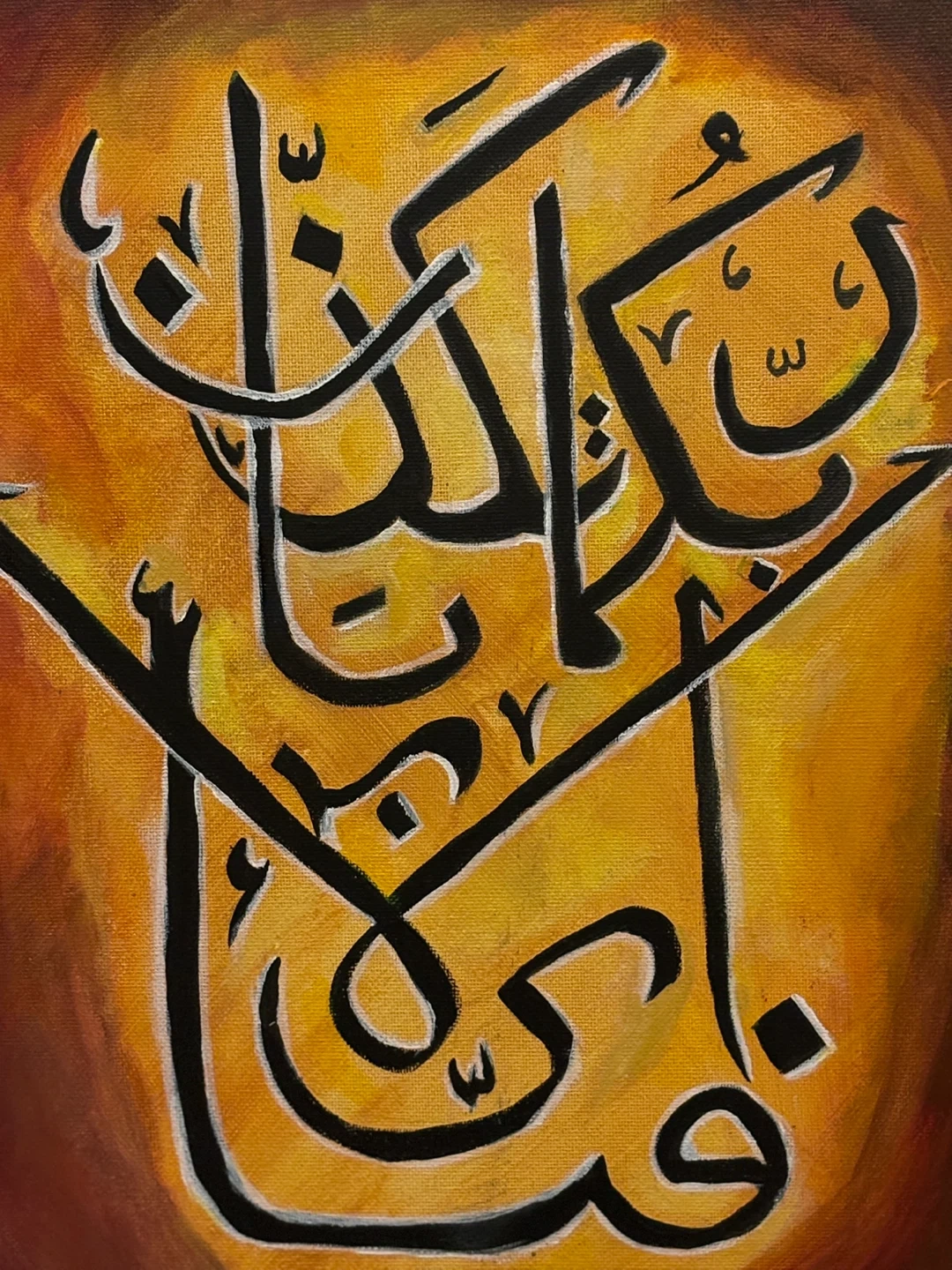 A beautiful piece of art featuring Arabic calligraphy on canvas, perfect for adding a touch of elegance to any room