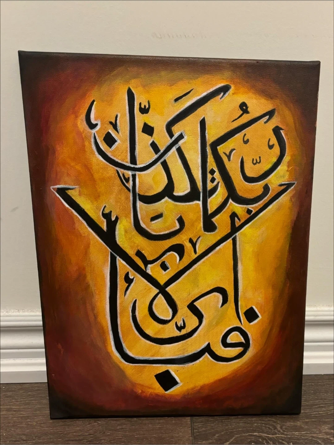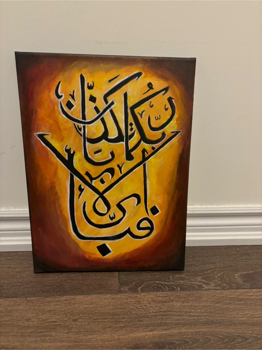 A beautiful piece of art featuring Arabic calligraphy on canvas, perfect for adding a touch of elegance to any room