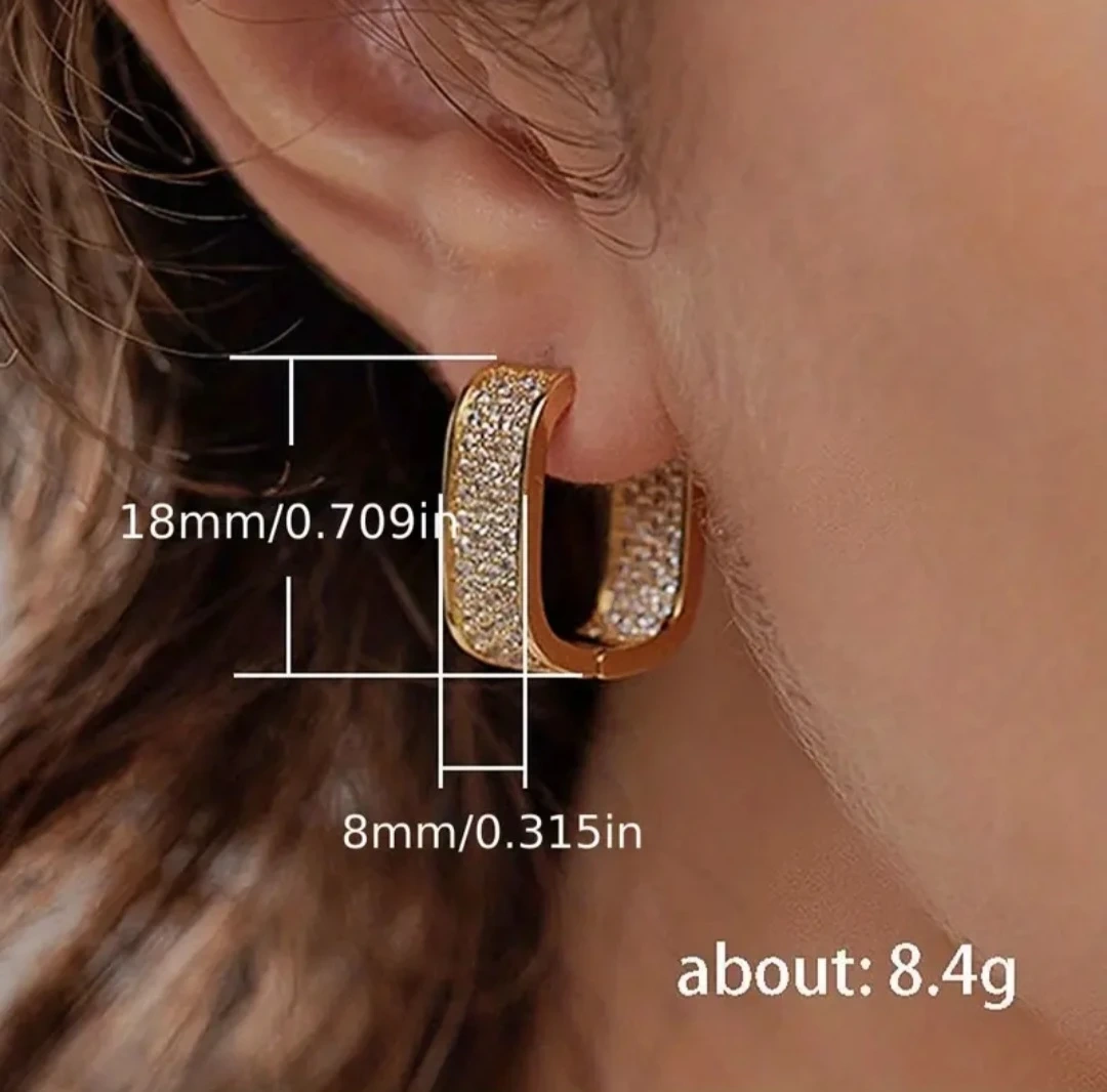 These are a pair of sparkly gold hoop earrings. They are new and have not been worn. The dimensions are 18mm/0.709in by 8mm/0.315in and they weigh about 8.4g