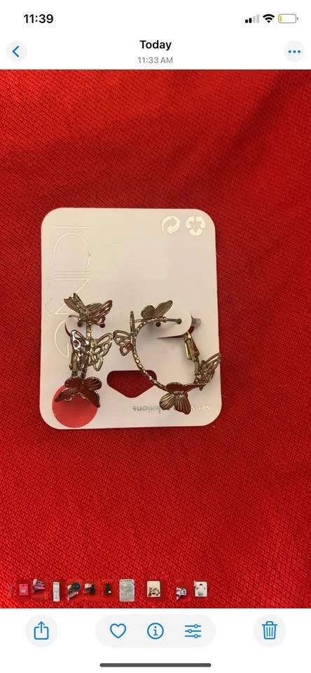 Buy & SellSilver Butterfly Ring + earringSilver Butterfly Ring + earring$5New silver ring with butterfly design, has small details on the band and butterfly wings. Still attached to original card.WHERE TO MEETCheck LocationView MapSELLERverifiedShabKillarney42742 reviews0 chats·0 favorites·1 viewsSEND CHAT TO SELLERHi Shab! I’m interested in your listing.Hi Shab! I’m interested in your listing.Get the Karrot app to chatSign In to chat