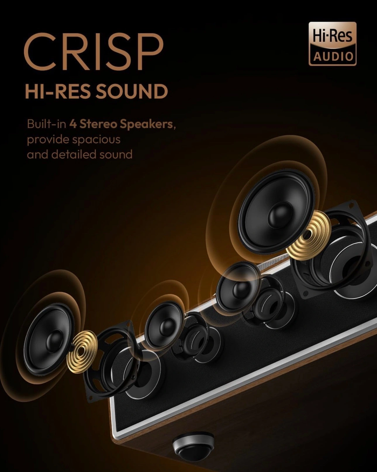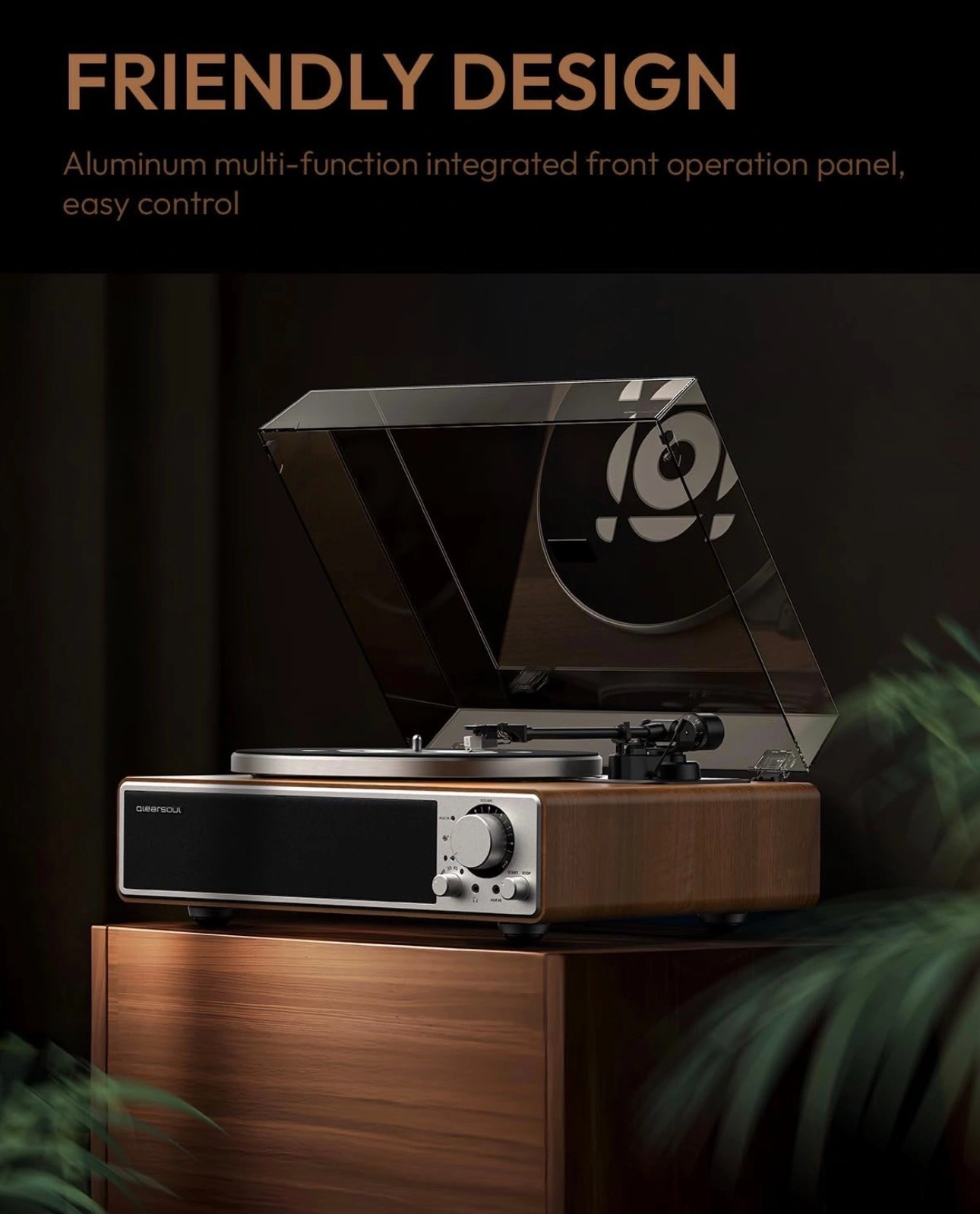 High-Fidelity Sound: Four full-frequency speakers deliver crisp highs and deep bass, balanced by advanced crossover technology. The 3-point support structure isolates the turntable from the acoustic cavity, creating an ideal anti-resonant platform for a pure, immersive analog music experience.(Tip: Please allow a break-in period of a few hours to 2 days at a mid-volume level for it to sound best.)