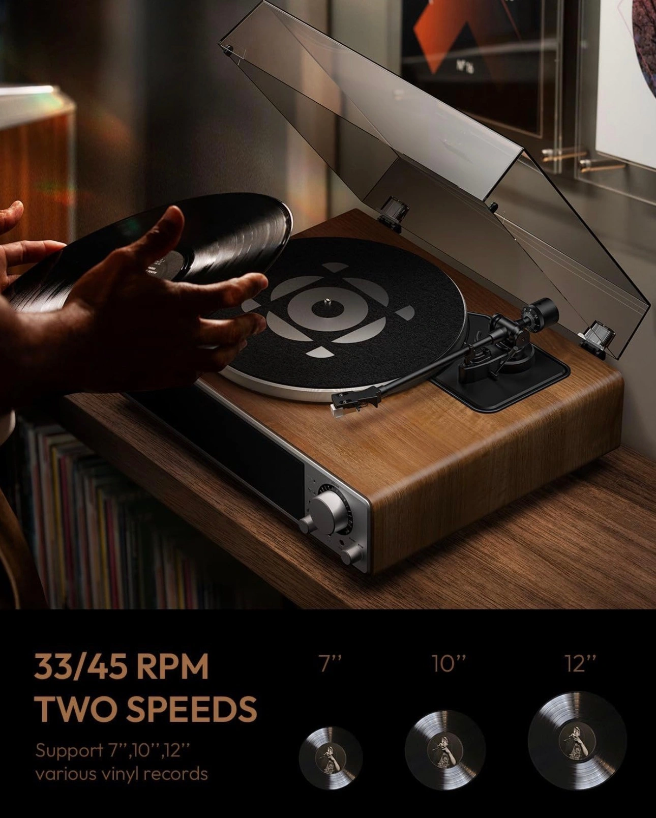 All-in-One Turntable: Built-in speakers, Bluetooth 5.4 input, and a switchable phono preamp make the ONE-Q highly versatile. It supports 33/45 RPM vinyl (7", 10", and 12" records) and allows wireless streaming from any smart device (phone, tablet, etc.). Connect external speakers or headphones for an enhanced audio experience.