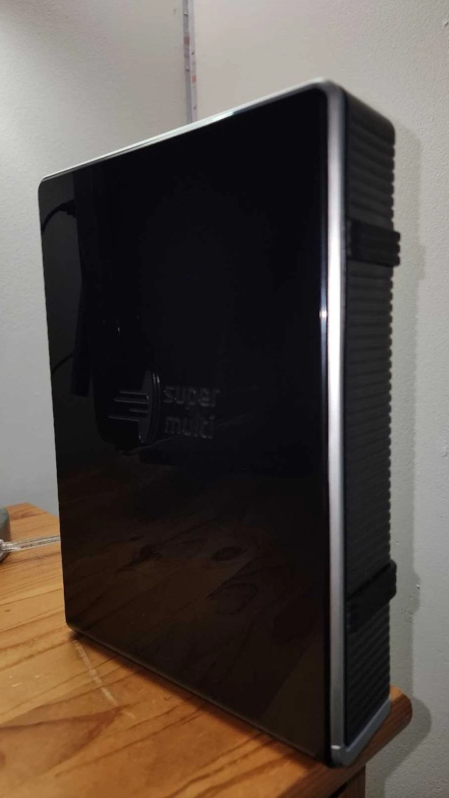 Selling an external LG Super Multi DVD Rewriter, model GE20 LU10. This is a used DVD rewriter manufactured in February 2009. Comes with all cables to get it running and connect it to a source. I plugged it in, and the disc mechanism works, but I do not have a use case for it, nor can I test the functionality. I never used it, but it wasn't mine forever. I can't verify if someone else has, but from the outside, there are no marks or scratches on the black plastic which is a good indicator that no one has used it. Functionalities: As an external drive, it connects to a computer via an interface (likely USB, based on similar models) to transfer data. Data Archiving: it supports M-DISC technology, which provides superior reliability for long-term data storage and archiving. It can read data from CDs and DVDs, allowing people to play movies, music, or access stored files through compatible software on their computer. If you want more pictures, don't fret, I'll be glad to send you some more if you are interested.