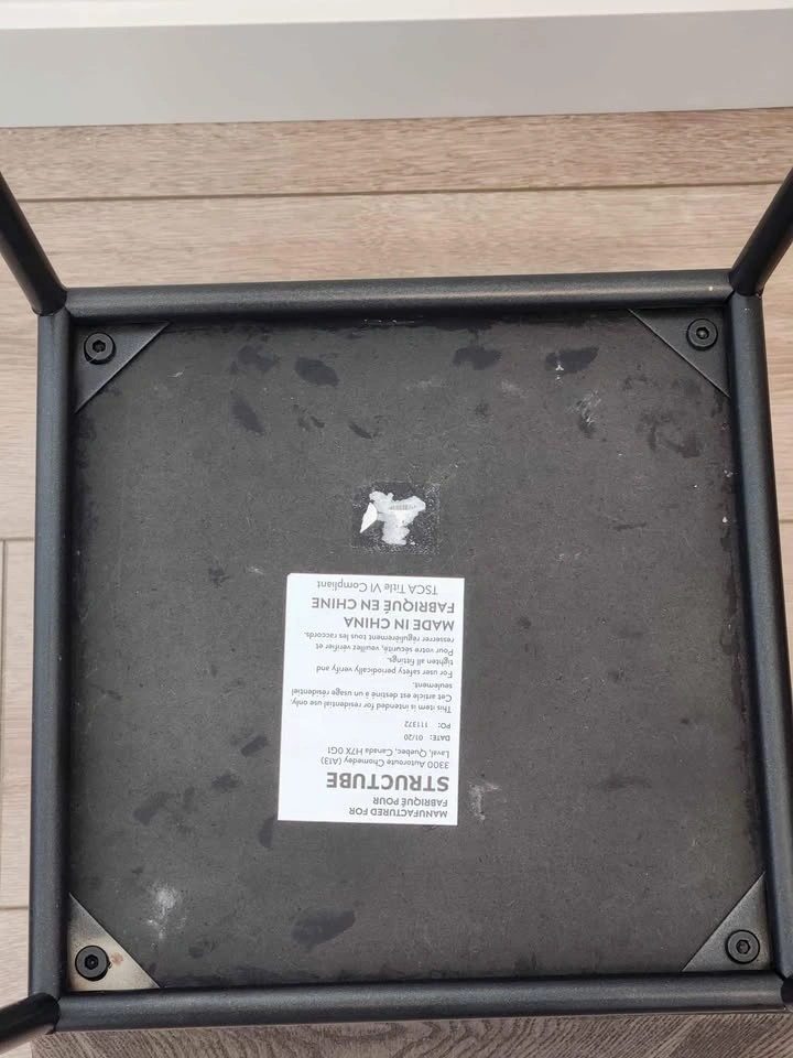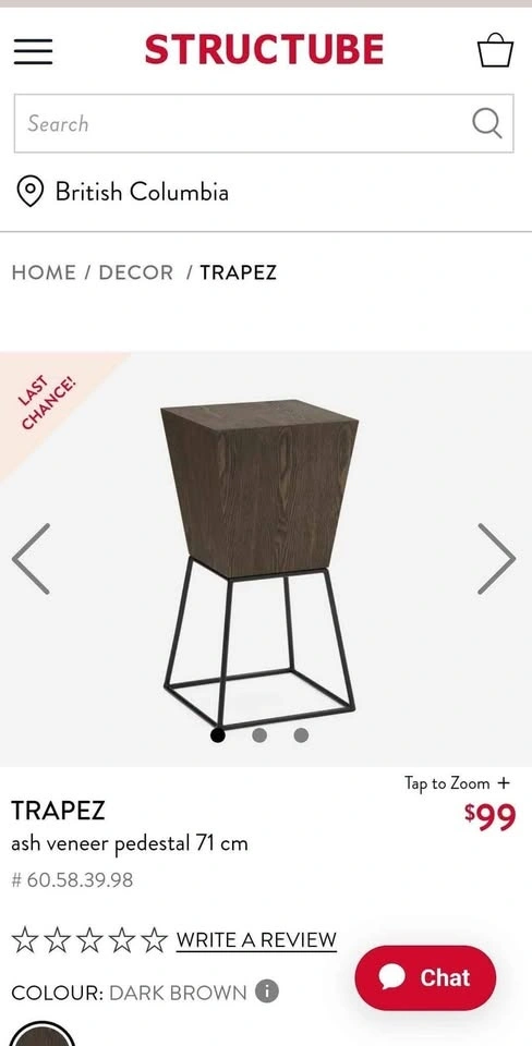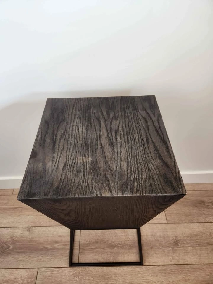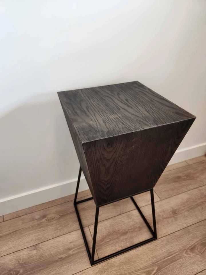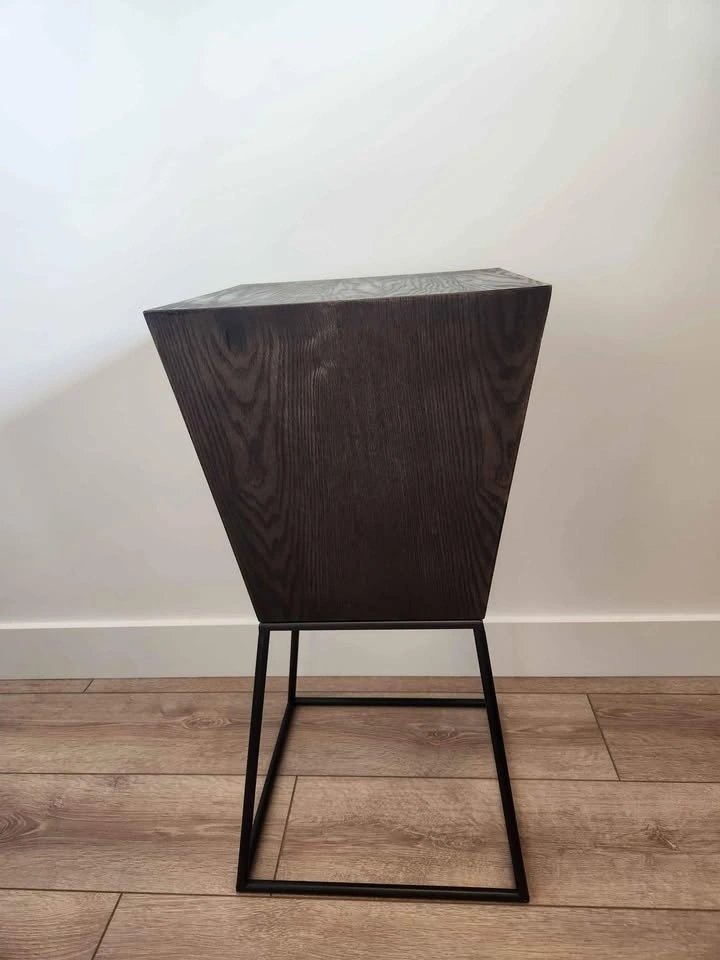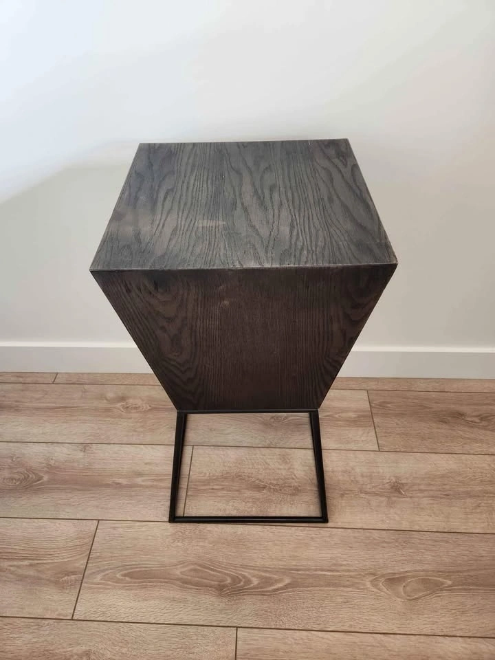 Structube Trapez ash veener pedestal (dark brown) bought about a year ago and used as a bar stool/ consoltable for a studio apartment. It's made of good quality wood, it's lighter than it looks, however very sturdy.