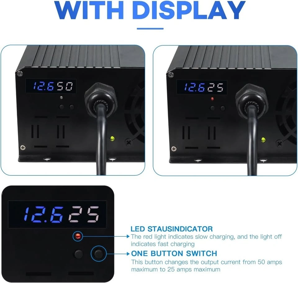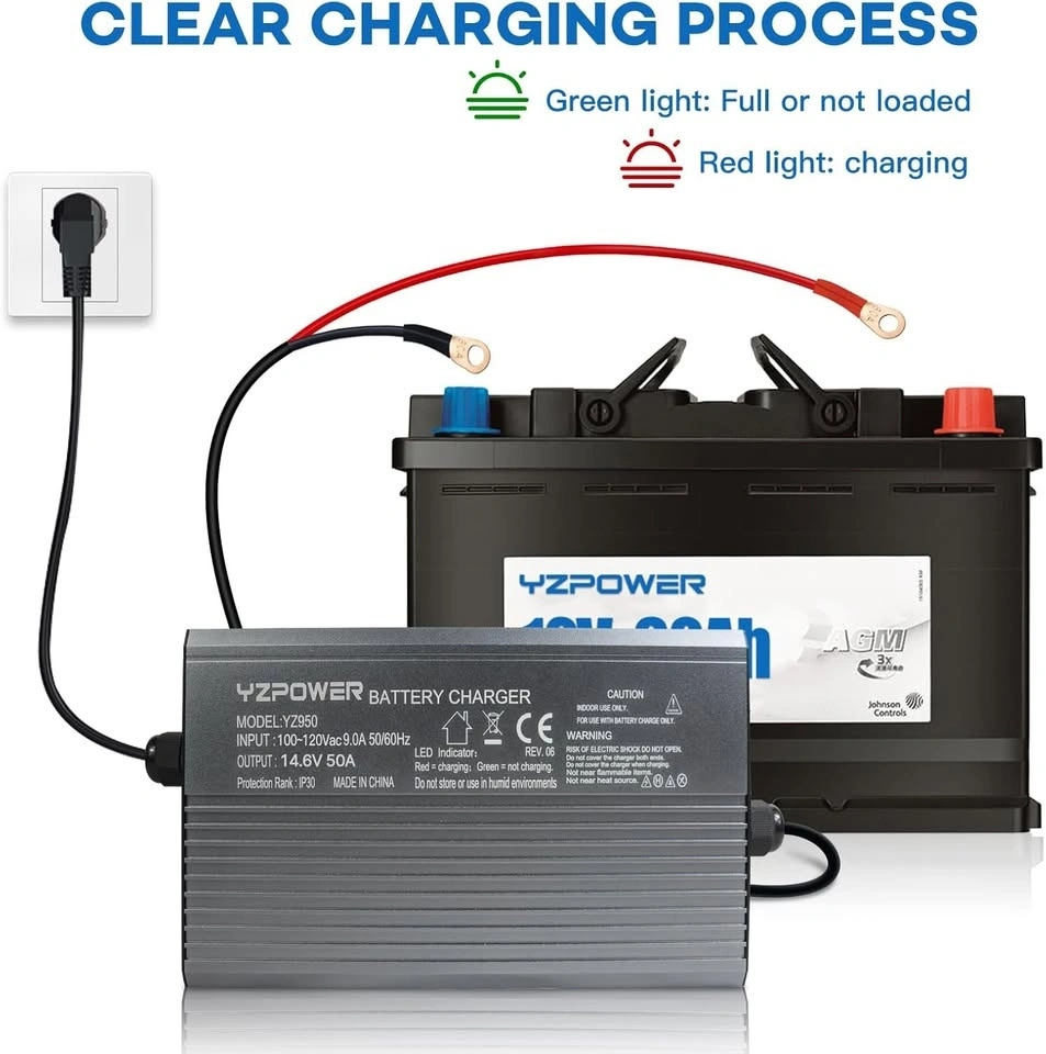 YZPOWER 14.6V 50A LifePO4 Battery Charger for Marine Boat RV Lawn Motor Motorcycle Golf Cart,12v Deep Cycle Rechargeable Batteries Charger AC-DC Charger