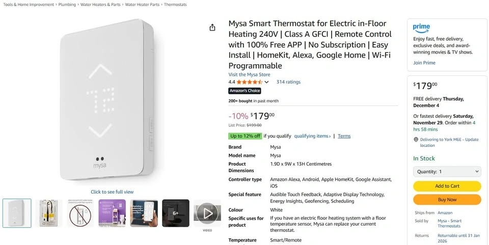 Mysa Smart Thermostat for Electric In-Floor Heating