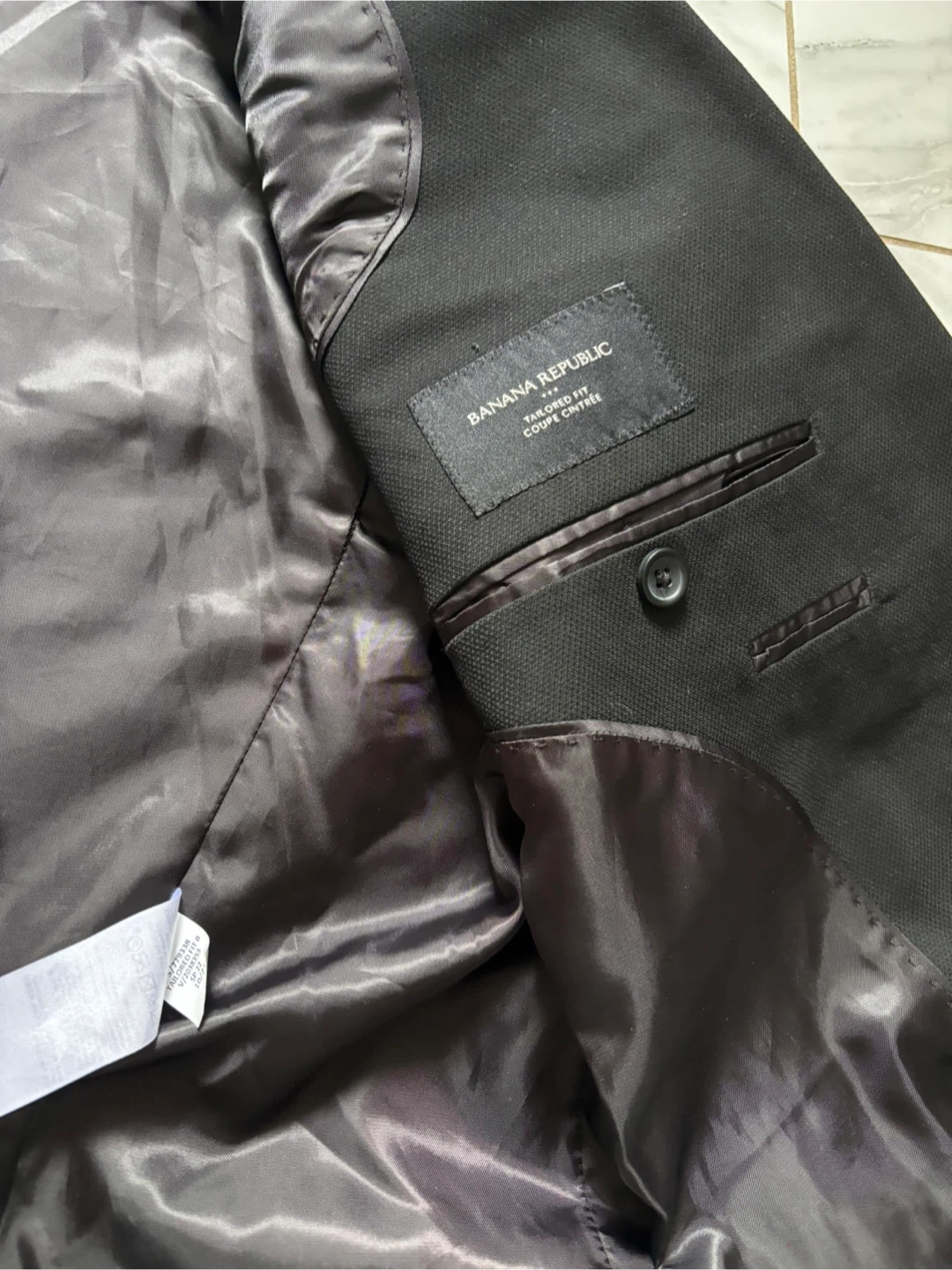 Selling a Banana Republic blazer in great condition! It's a tailored fit, Coupe Cintrée, and size 44R. The colour is black, and it's perfect for any occasion