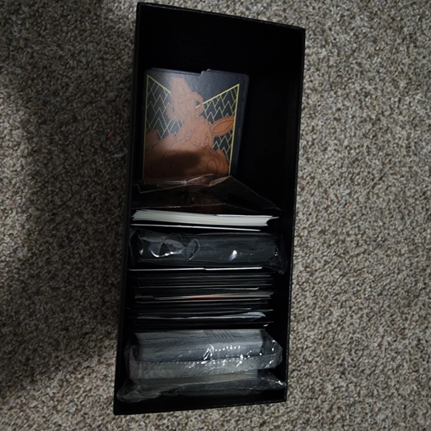 Selling a Pokémon TCG Eevee VMAX Premium Collection! The set includes various Pokémon cards, dice, and condition markers. Comes with the original box. Some cards dented/or/cracked. If further questions contact me.
