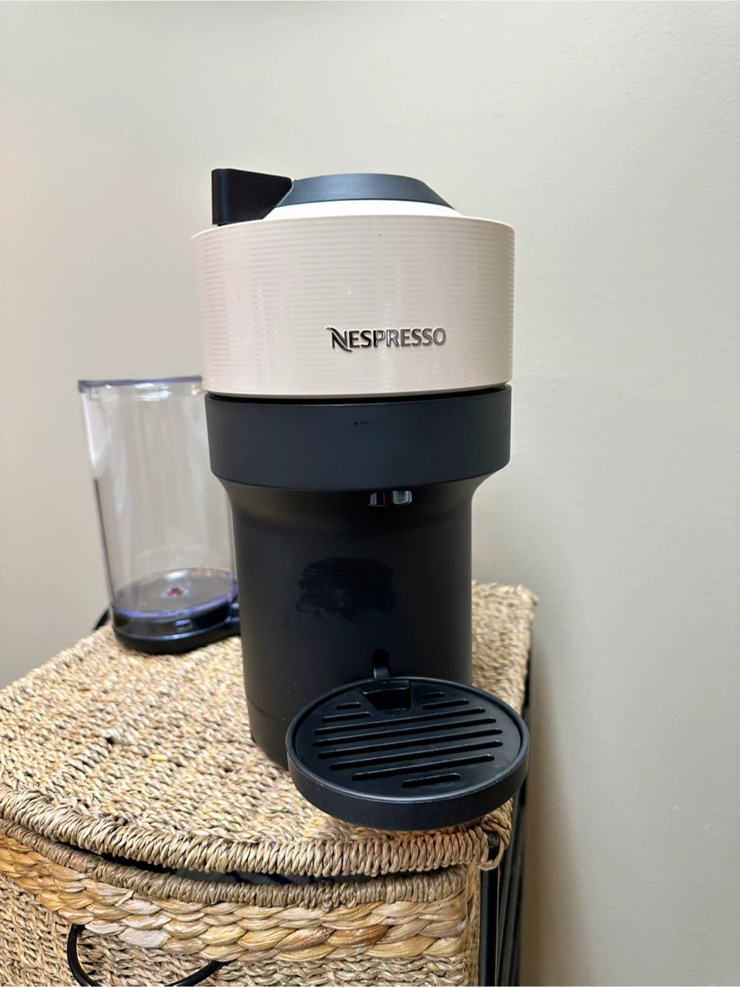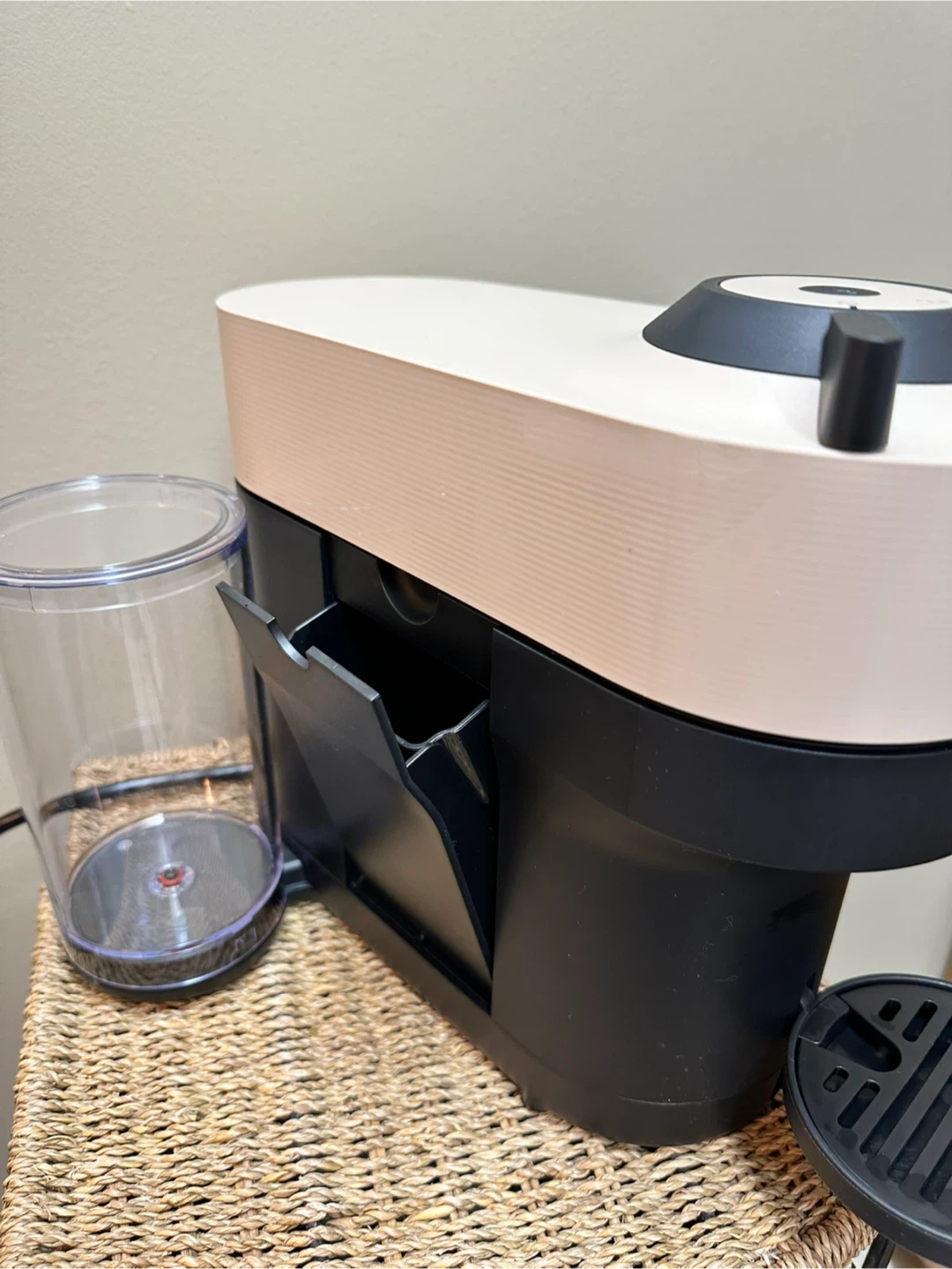 Honestly bought a few months ago…used only a few times. I found out I don’t like strong coffee. I paid much more. This is a beige colour so will suit many kitchens. Absolutely nothing wrong with it, in perfect condition. I will include 52 assorted coffee pods.