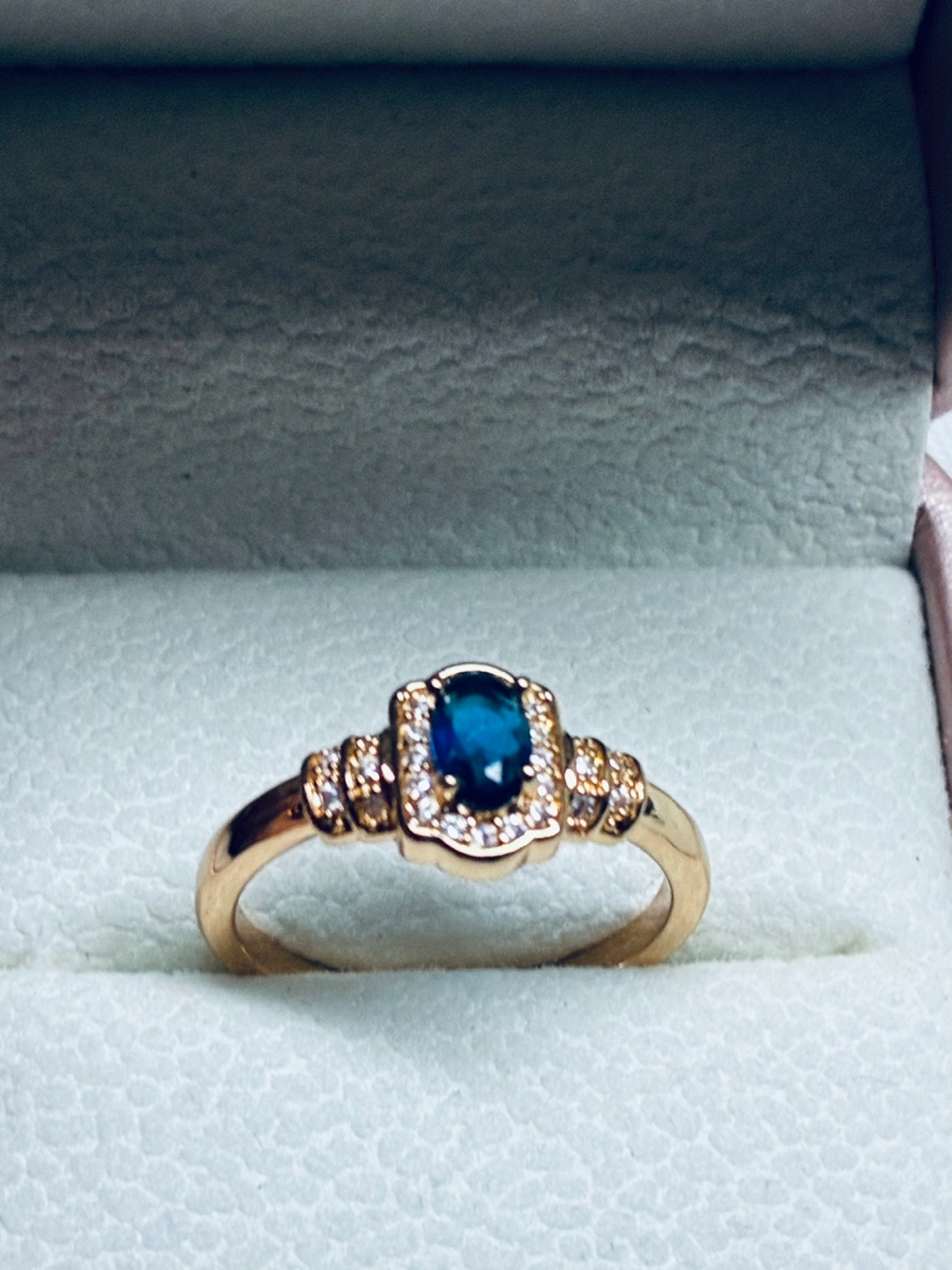 Stunning & unique oval shaped sapphire gold filled ring and ready to add a touch of elegance to your collection.