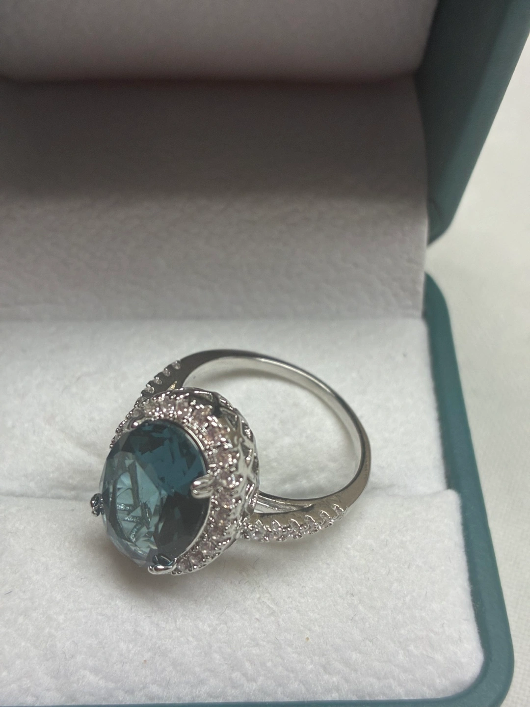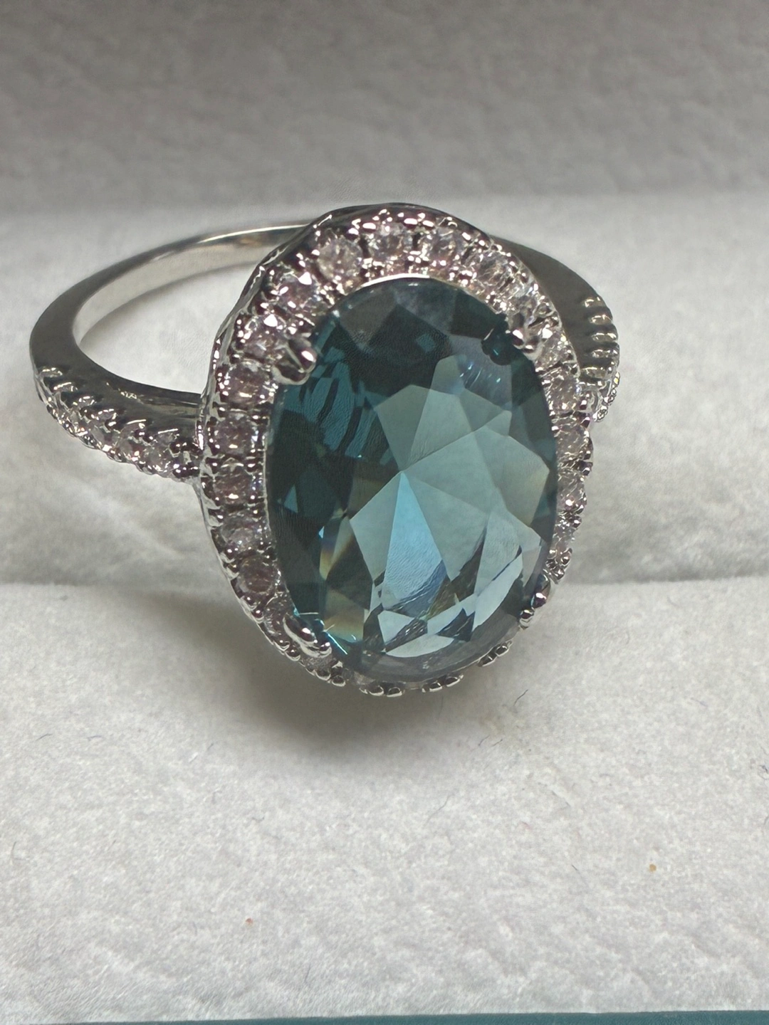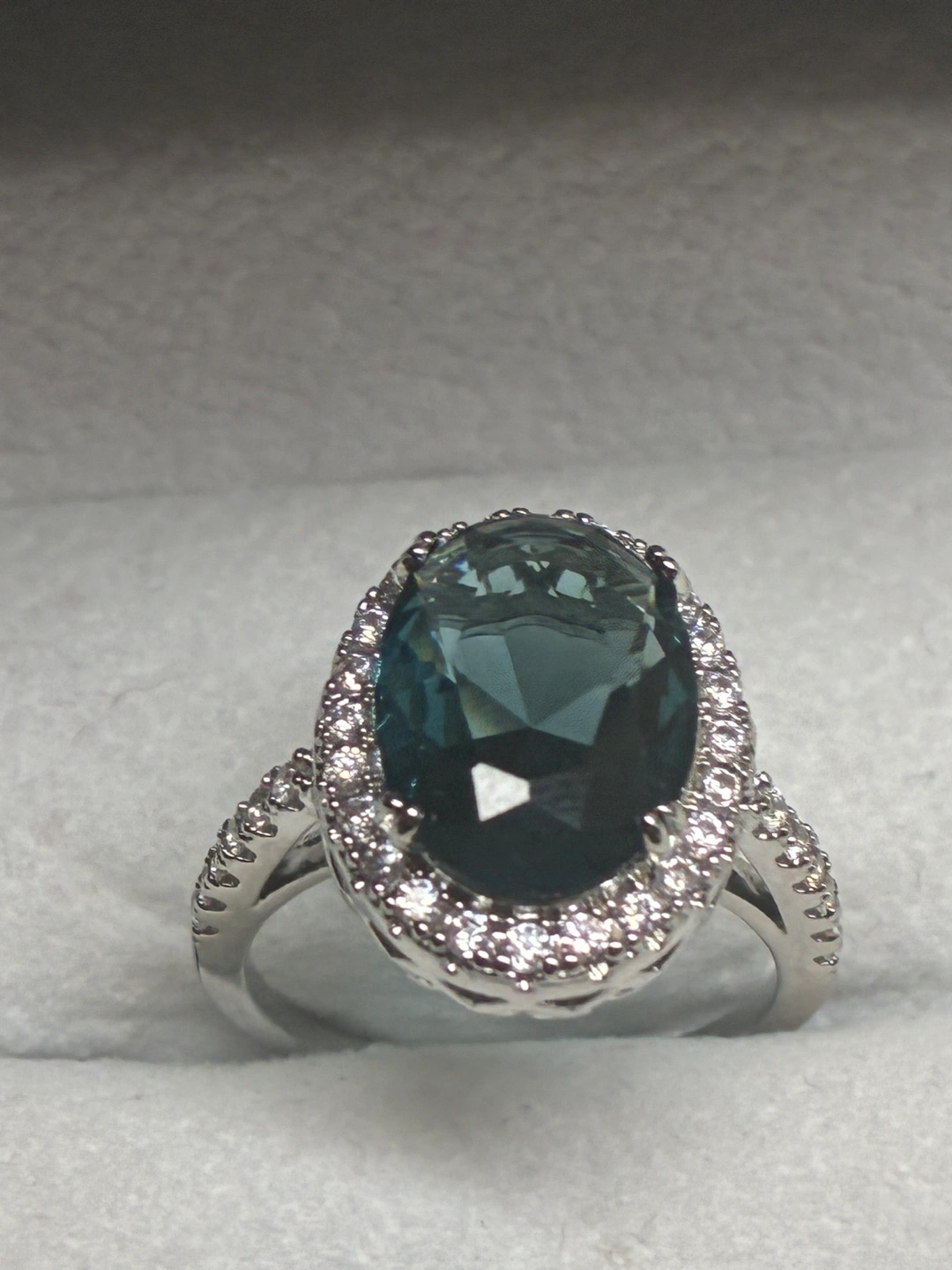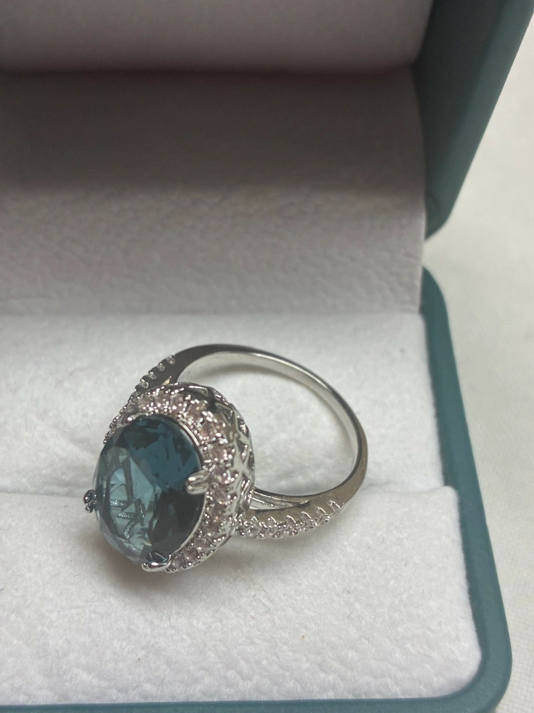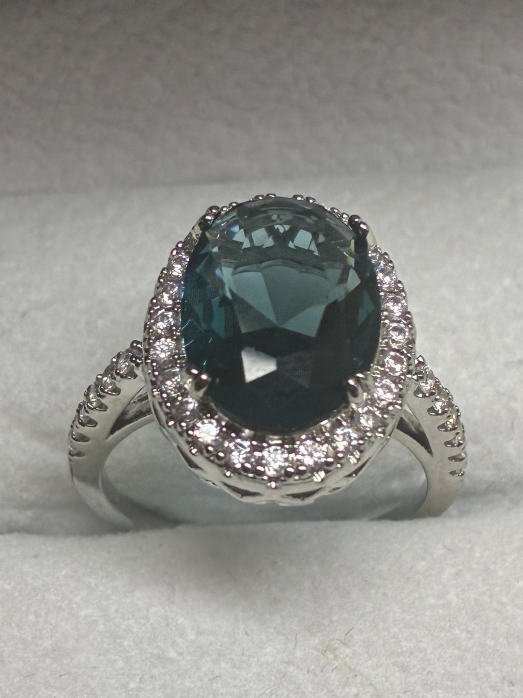 Gorgeous Dark Teal Oval Cut Topaz Sterling Silver Ring - Size 7