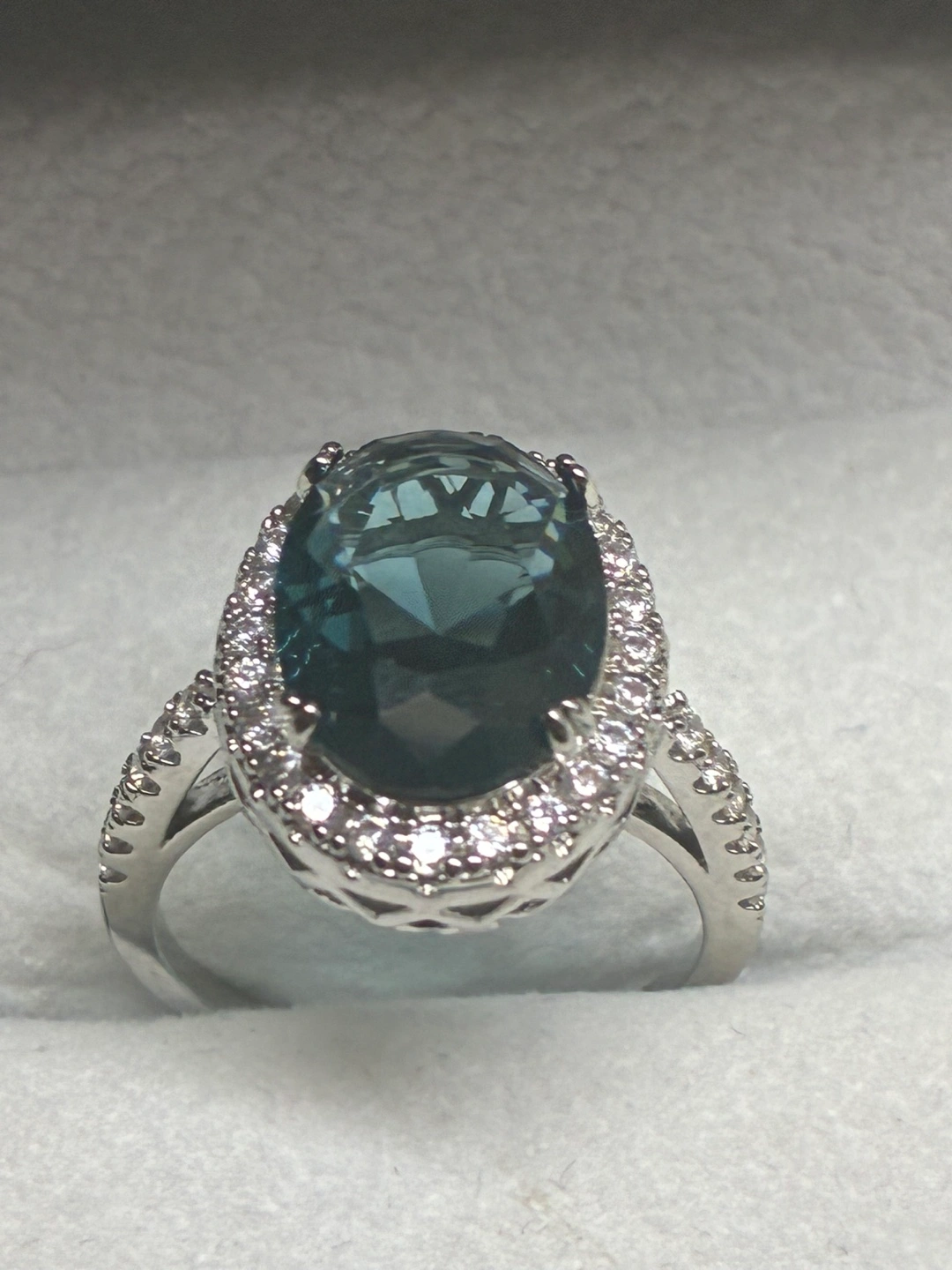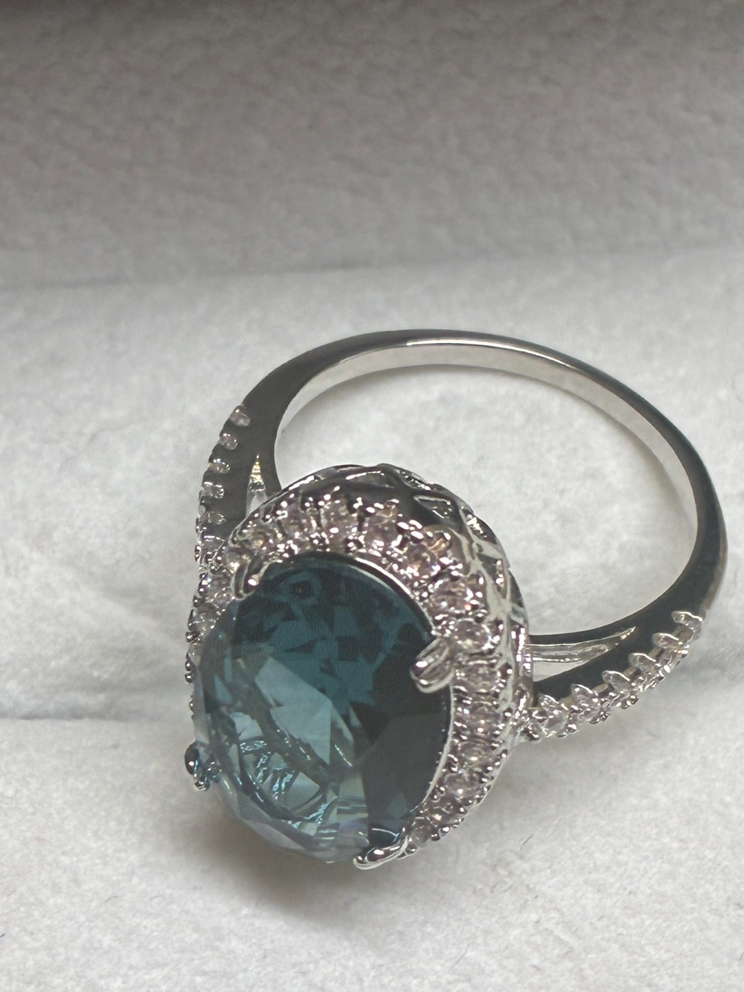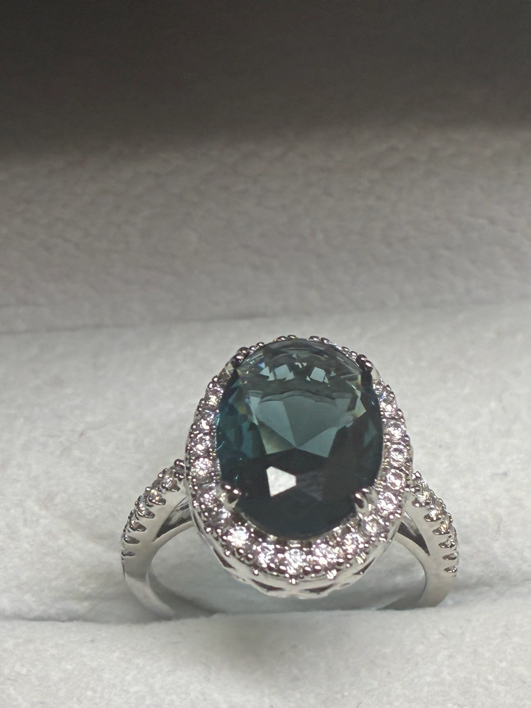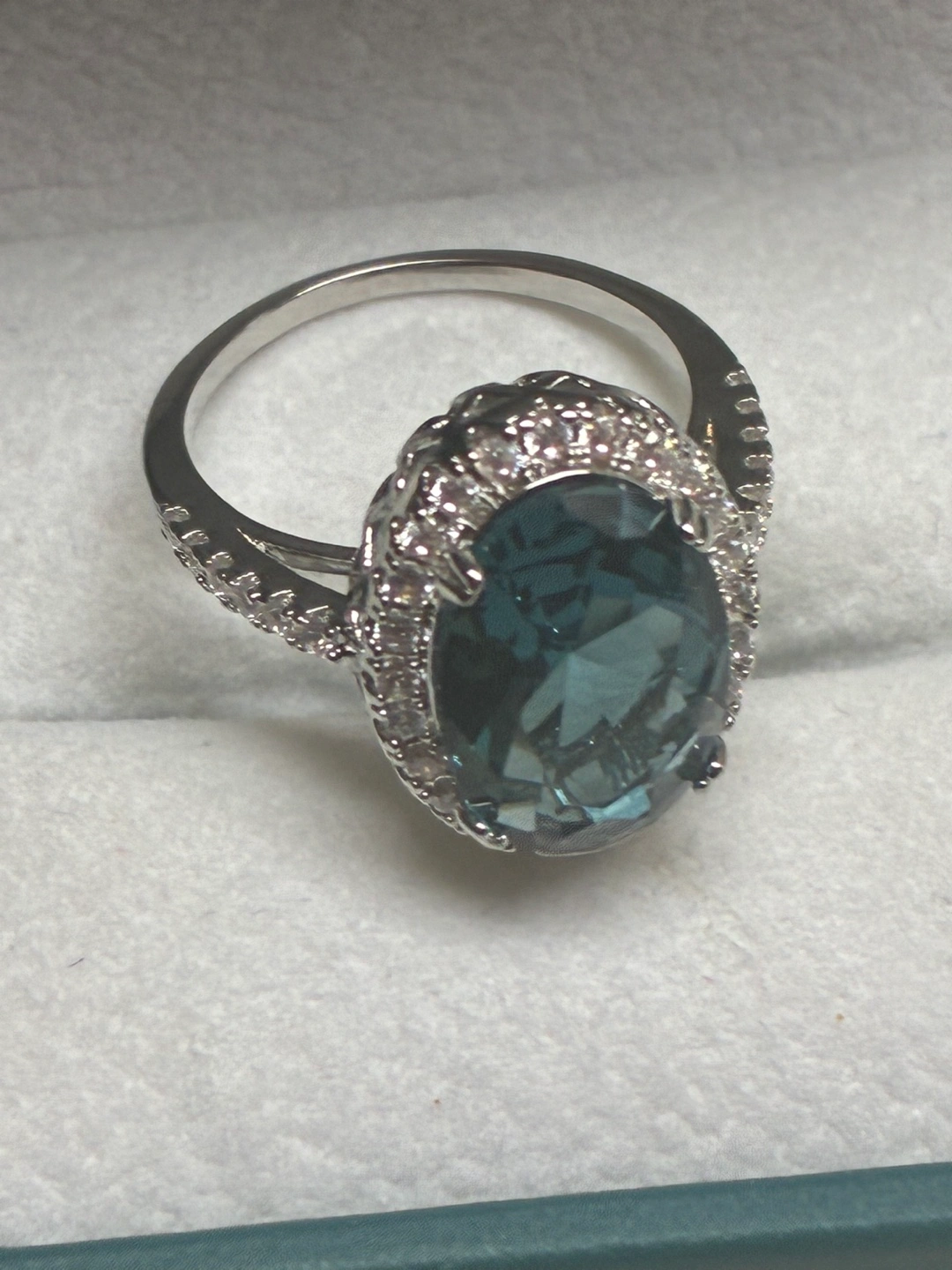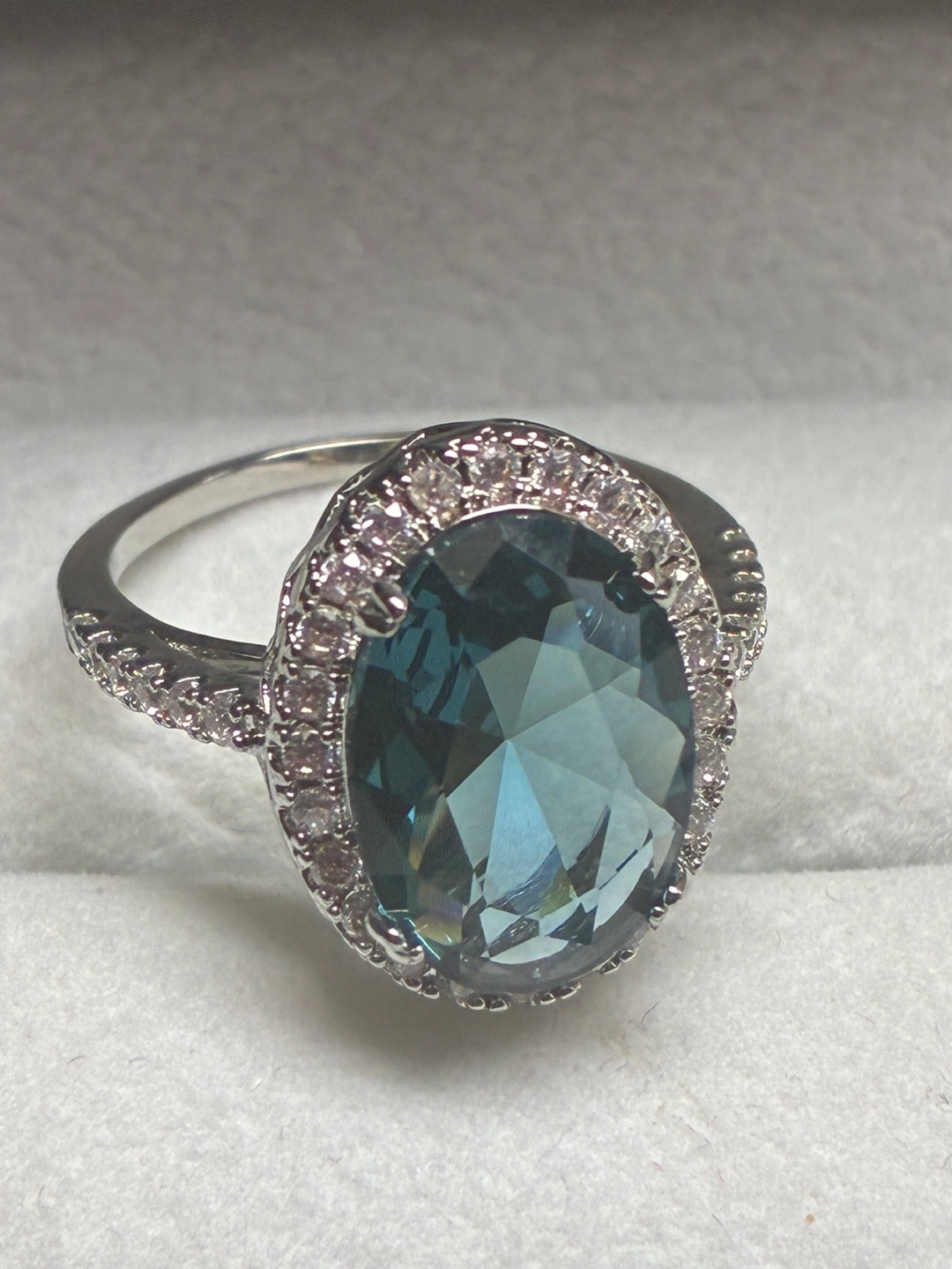 Gorgeous Dark Teal Oval Cut Topaz Sterling Silver Ring - Size 7