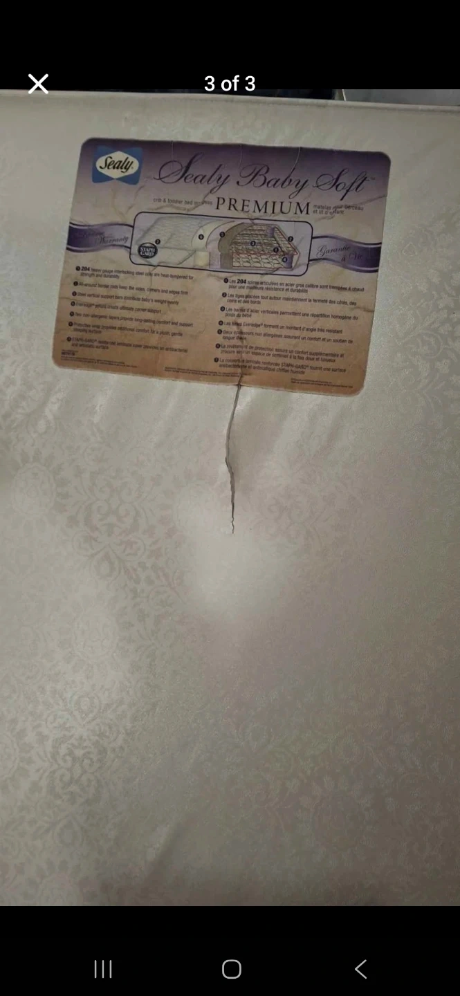 Selling a Sealy Baby Soft Premium crib mattress. It has 204 heavy duty coils and border rod for extra firm edge, and steel vertical support helps distribute body weight evenly. It's also hypoallergenic, providing lasting comfort and support