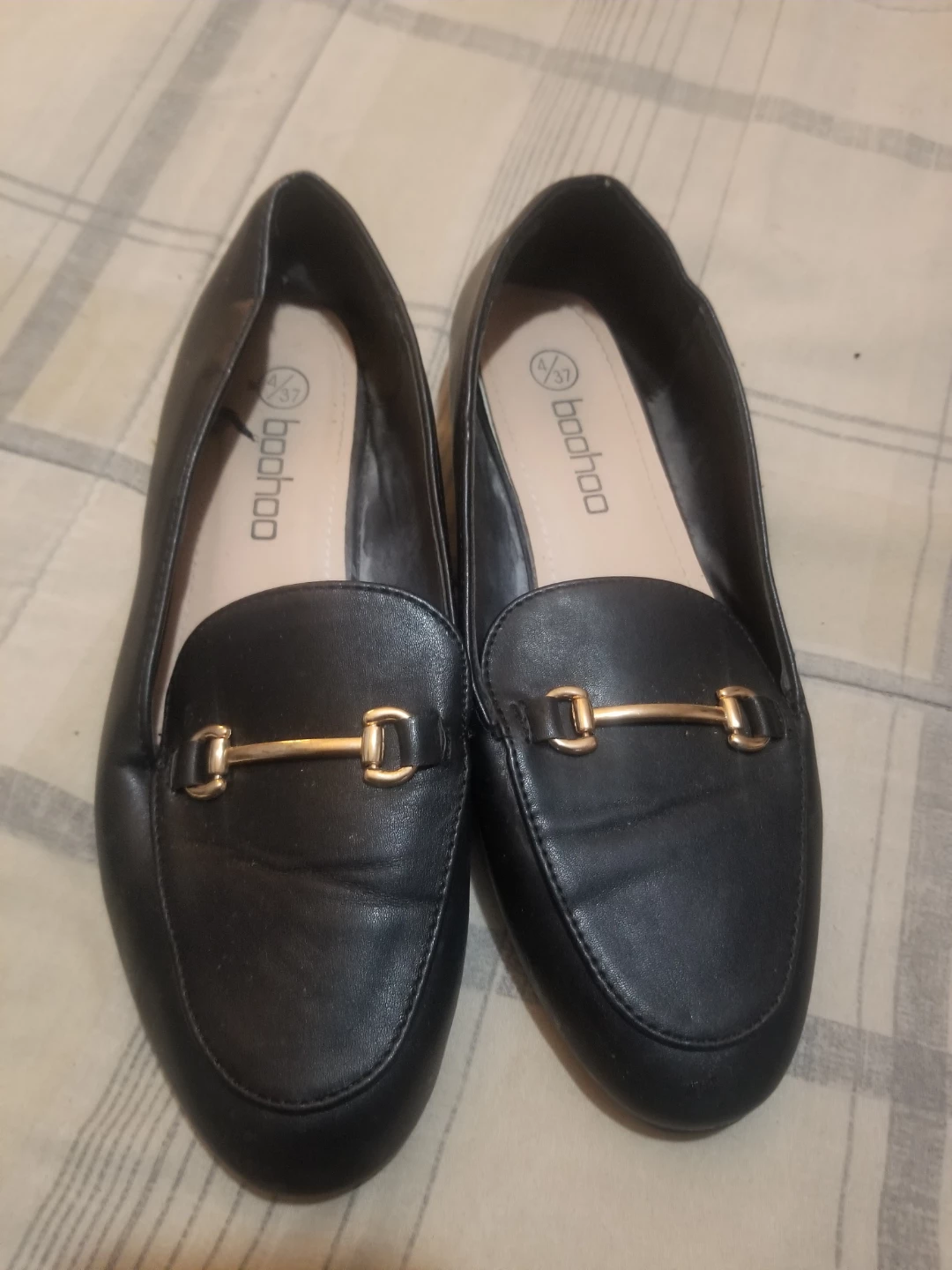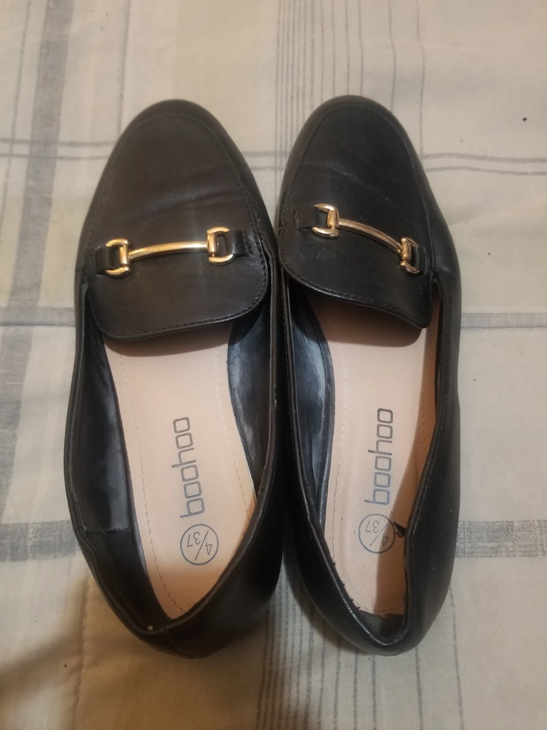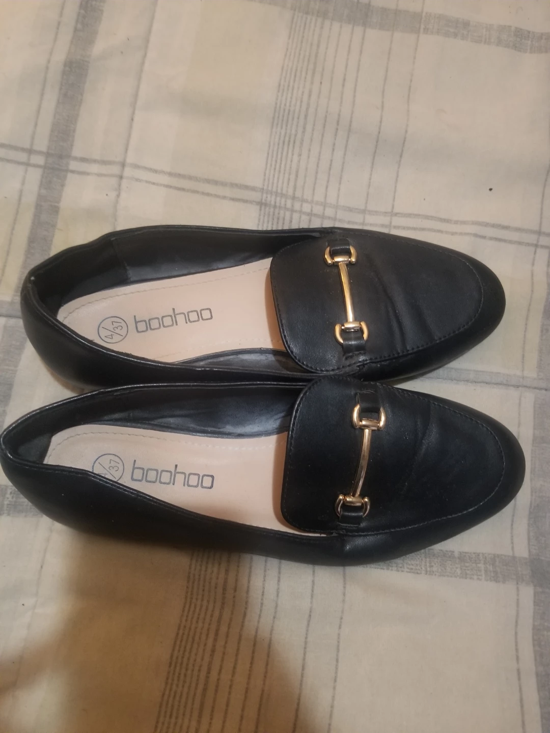 Hello Fellow Karroters 💛 I have a pair of Boohoo black loafers in size 4/37. They have a gold-toned bar detail across the front. Please see the pictures for condition. Completely Free! Just Looking to Give Back to Our Community 🖤