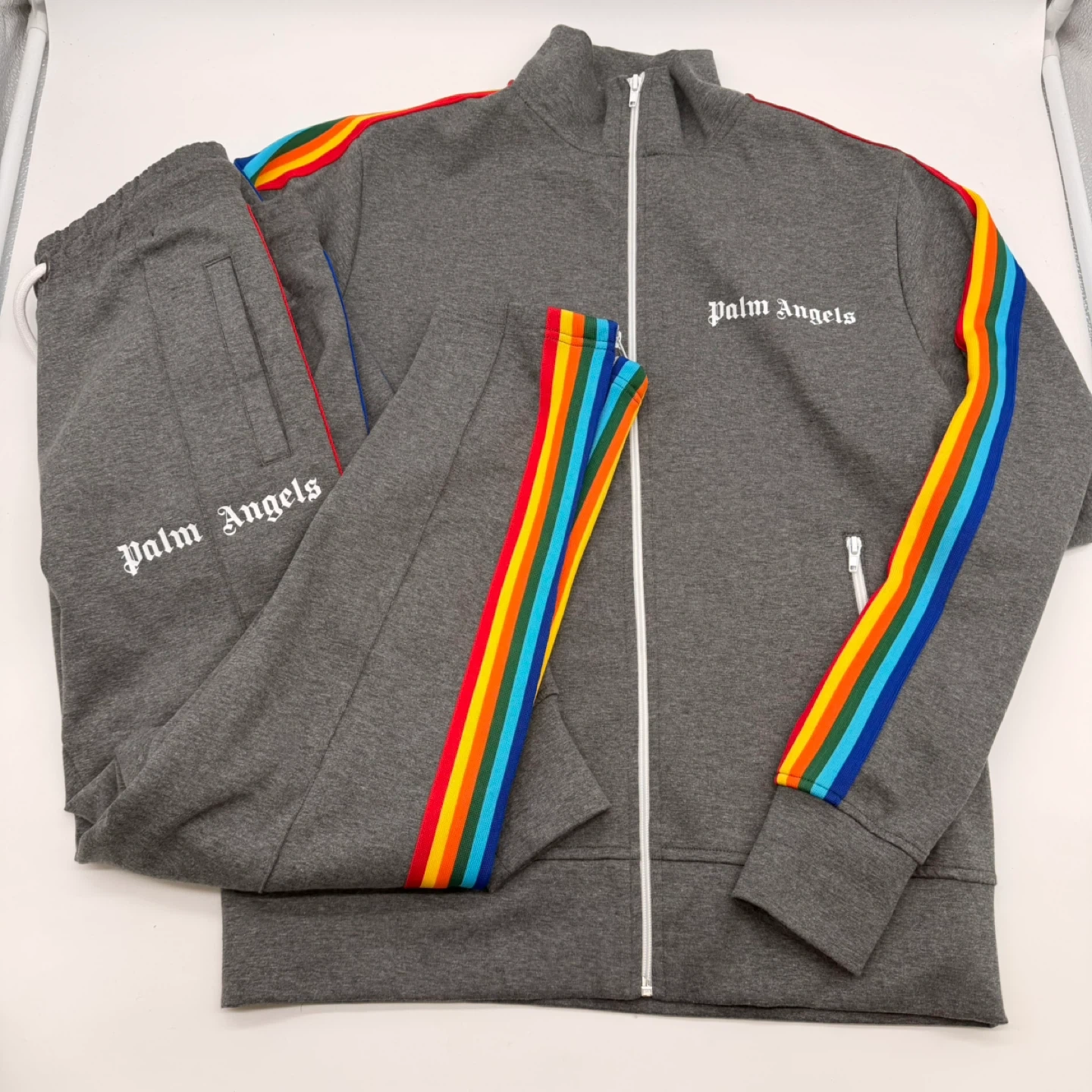 Authentic Palm Angels tracksuit set including zip-up jacket and matching pants.