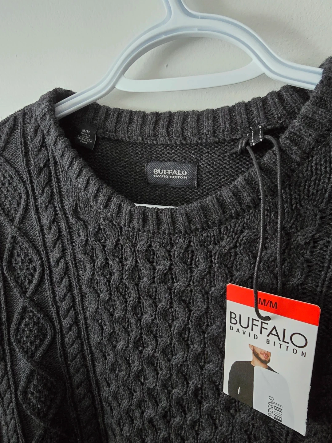 Cozy Buffalo David Bitton sweater in a nice dark grey colour. It's a size M/M and looks great for those chilly days! The material is soft and has a nice textured knit pattern.