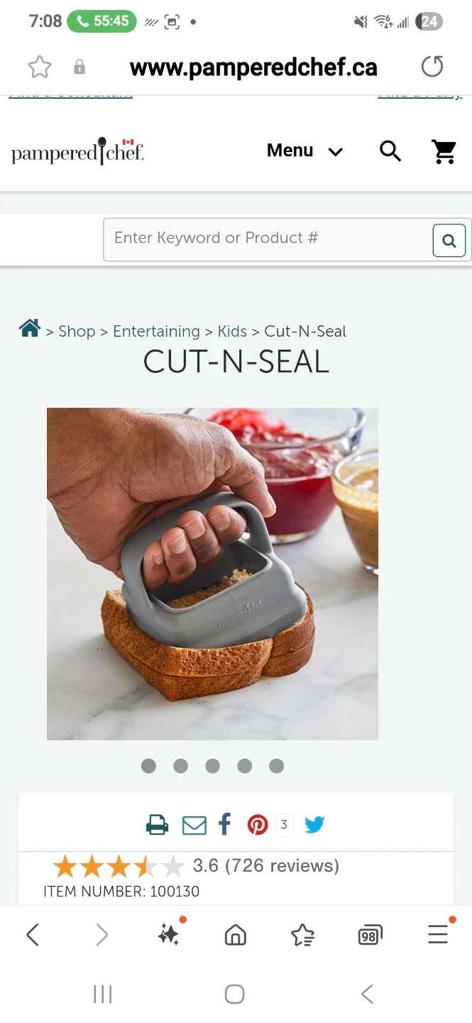 Buy & SellPampered Chef Cut-N-SealPampered Chef Cut-N-Seal$7Selling a Pampered Chef Cut-N-Seal! It's perfect for making sandwiches. Item number is 100130ConditionNewWHERE TO MEETCheck LocationView MapSELLER140619Trenton100 reviews0 chats·1 favorites·22 viewsSEND CHAT TO SELLERHi 140619! I’m interested in your listing.Hi 140619! I’m interested in your listing.Get the Karrot app to chatSign In to chat