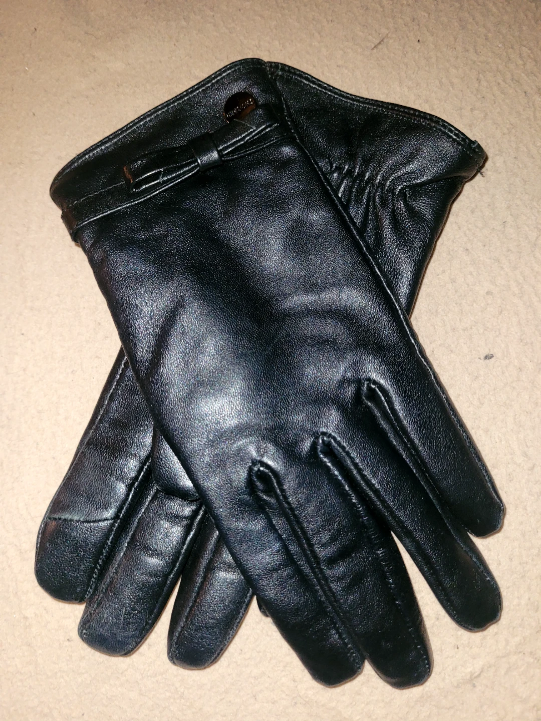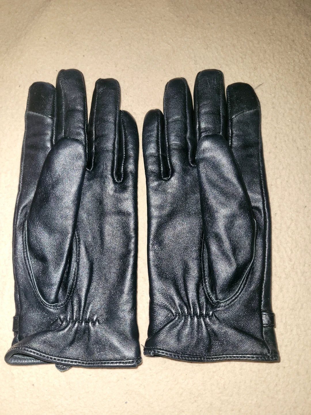 Here are a pair of Danier leather gloves in black. They're in great condition and perfect for keeping your hands warm during the colder months. The gloves are made of leather.