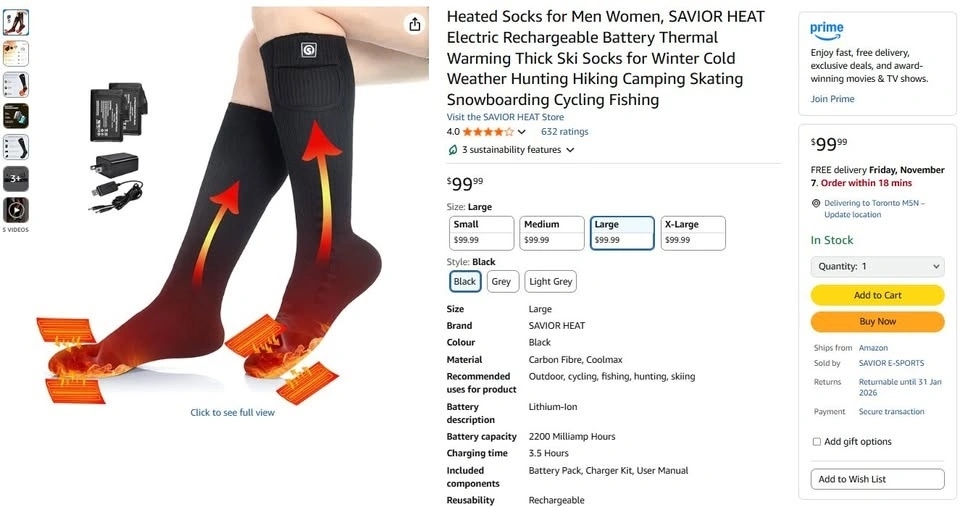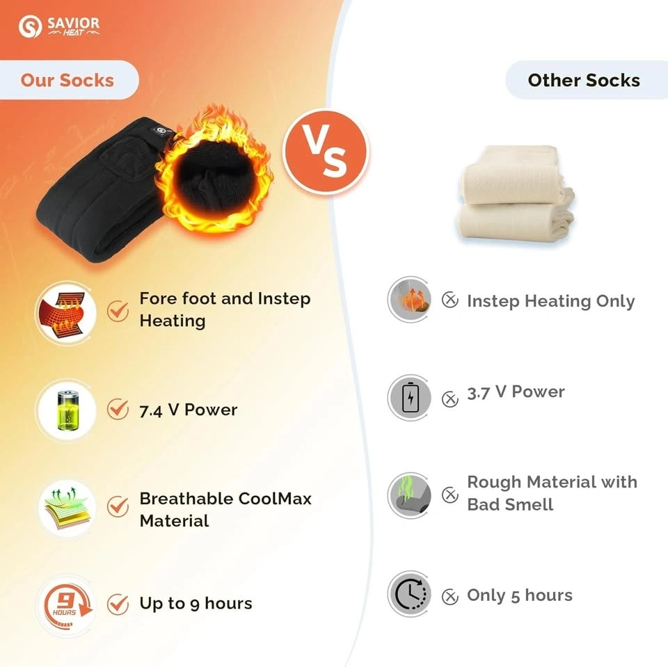 Heated Socks for Men Women, SAVIOR HEAT Electric Rechargeable Battery Thermal Warming Thick Ski Socks for Winter Cold Weather Hunting Hiking Camping Skating Snowboarding Cycling Fishing