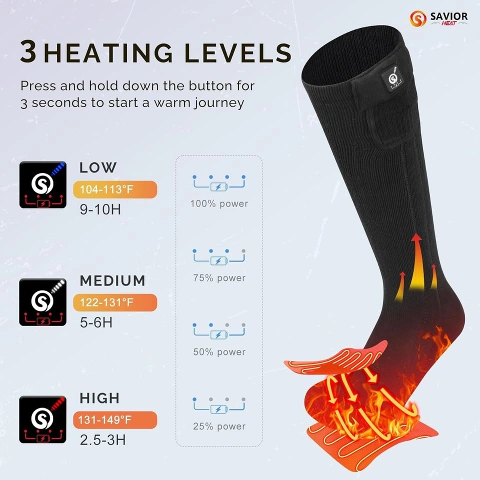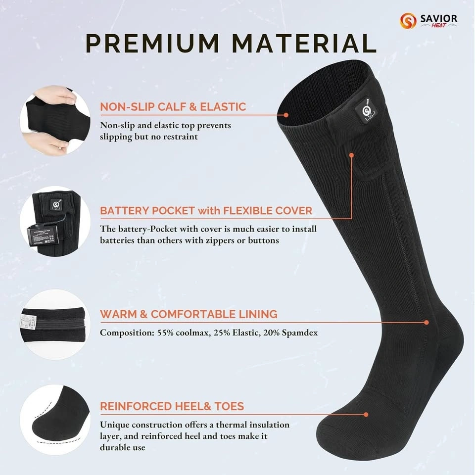 Heated Socks for Men Women, SAVIOR HEAT Electric Rechargeable Battery Thermal Warming Thick Ski Socks for Winter Cold Weather Hunting Hiking Camping Skating Snowboarding Cycling Fishing