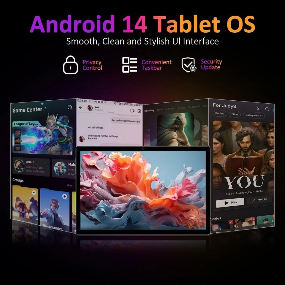 POWMUS Tablets 2024 14 inch Android 14 Tablet, 36GB RAM, 256GB Storage(Expand to 1TB), 2K Display, 8 Core CPU, 11580mAh Battery,4 Speakers, WiFi 5GHz Tablet Case-Black