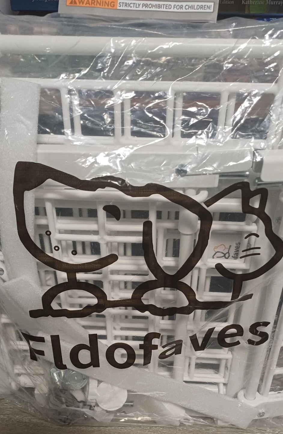 Selling a brand new....Fldofaves height-adjustable pet gate. It's white and looks like it's in great condition! It fits 95% of homes, so no custom orders are needed. It also helps to stop dangerous falls, even for jumping experts!
