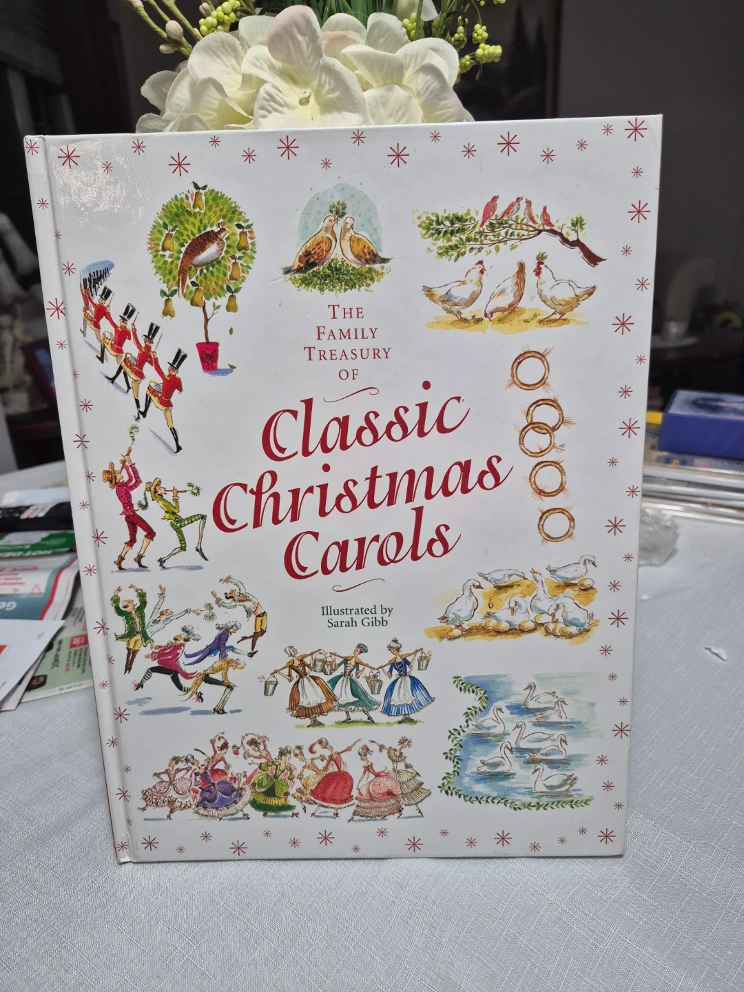 Selling "The Family Treasury of Classic Christmas Carols" illustrated by Sarah Gibb! This book contains lyrics to all your favourite holiday songs and carols. Inside you'll find classics like Angels We Have Heard on High, Away in a Manger, Deck the Halls, and many more! It's a beautiful Christmas treasury to share with your family during the holidays