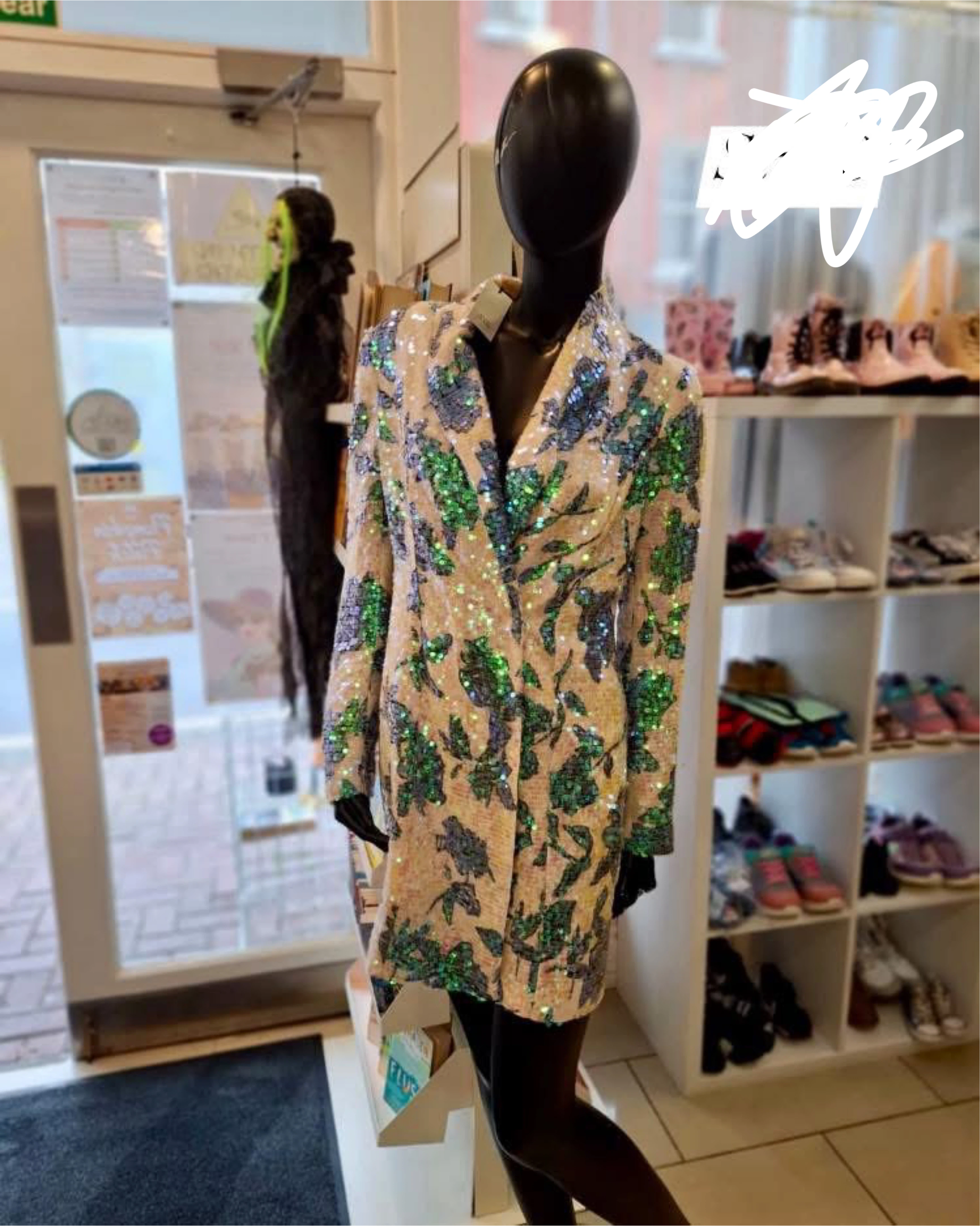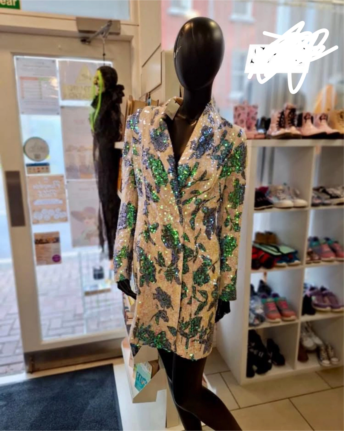This is a River Island sequin blazer dress. It's a really eye-catching piece with a unique design. The sequins add a touch of sparkle, making it perfect for a night out or a special occasion. It's in great