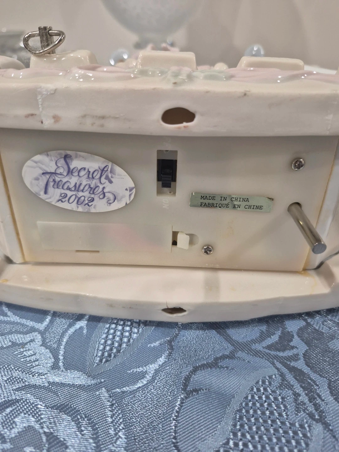 I have a charming Secret Treasures rocking horse music box for sale! This piece, marked '2002', features a beautiful design. It's in good condition and would make a lovely addition to any collection or nursery