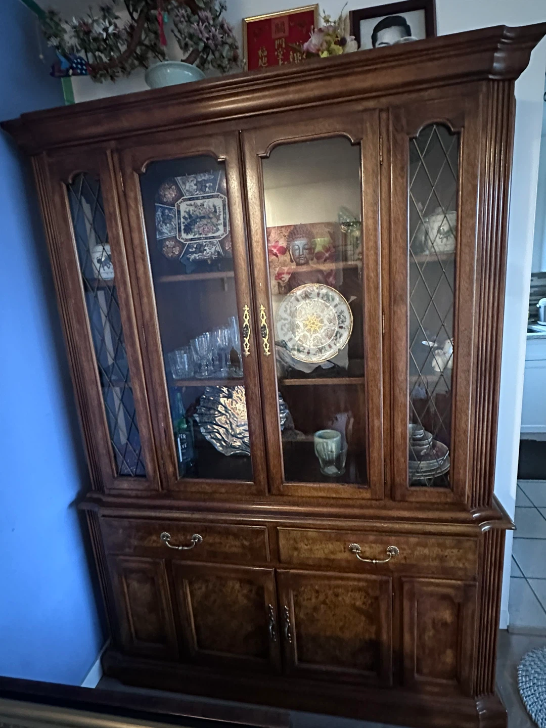 Heavy solid wooden china cabinet.