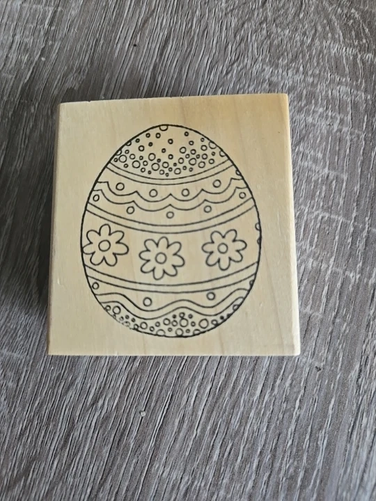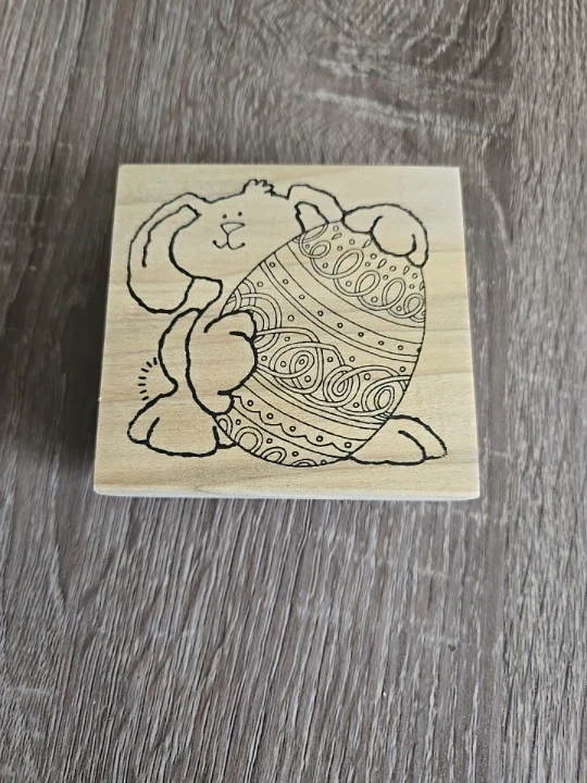 Selling two cute rubber stamps, perfect for Easter crafting! One features a decorated Easter egg, and the other shows a bunny holding an egg. Great for card making or scrapbooking