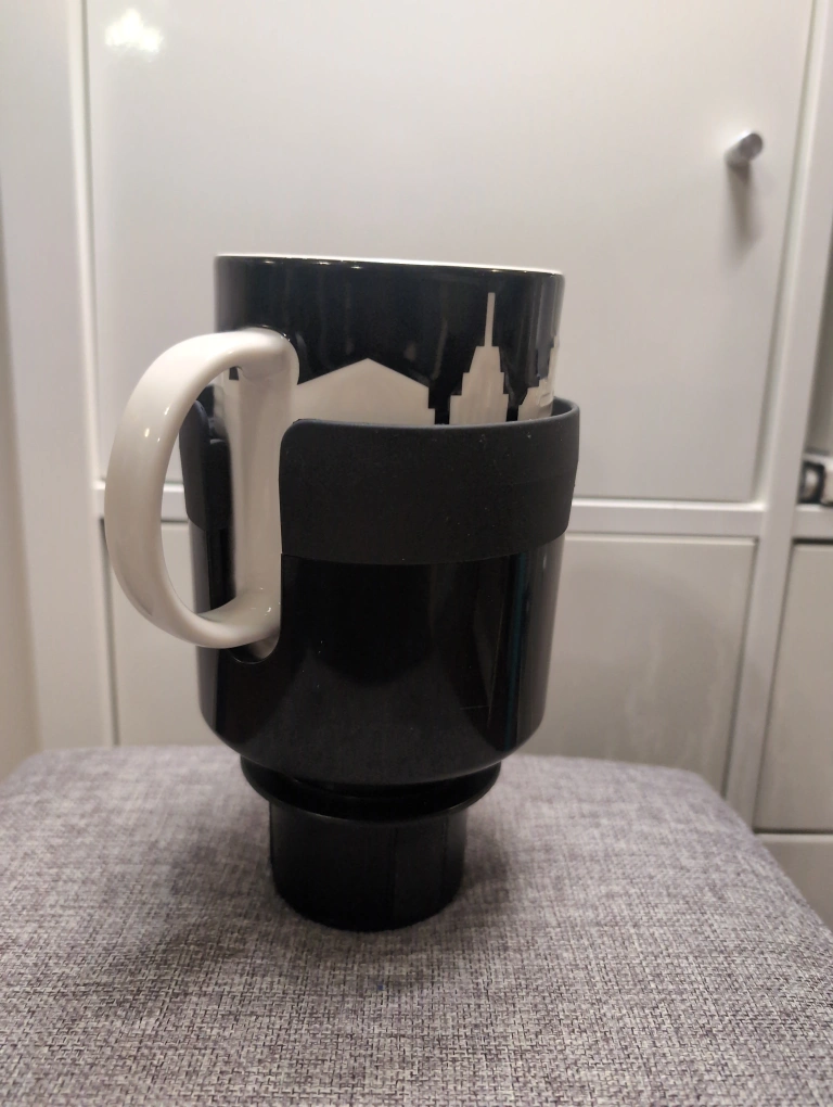 Cup holder for cars. used for a month only. clean and fit well to most cup holders. using starbucks mugs to demonstrate the maximum fit .