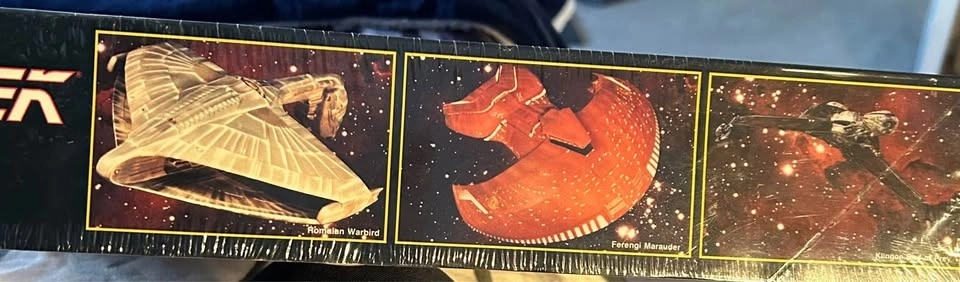 Star Trek 3 complete detailed spaceships. Ferengi Marauder, Klingon Bird Of Prey, and Romulan Warbird. New never been opened! Still sealed.