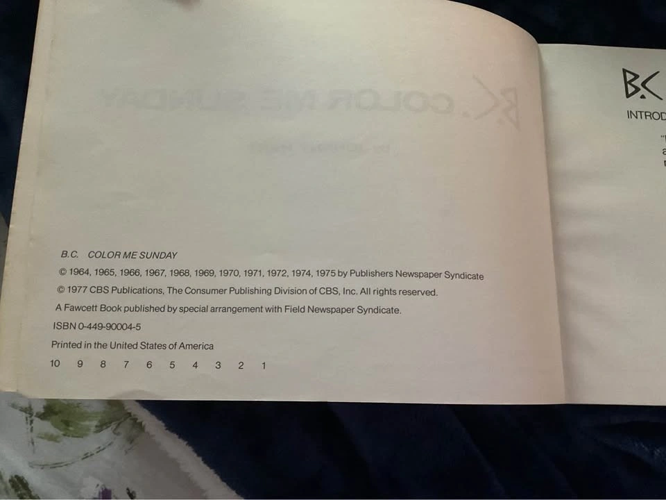 1977 comic strip edition of Johnny Harts BC Color Me Sunday. This book is in really good condition for a vintage book.