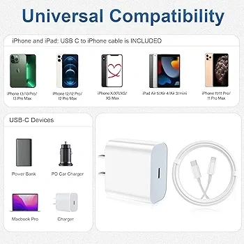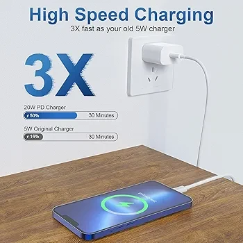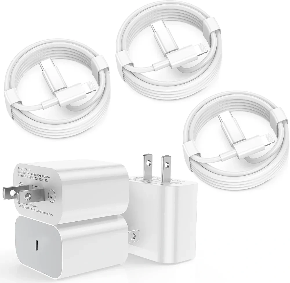 π Charge your iPhone up to 3Γ faster with this MFi-Certifiedβ includes 3 USB-C fast wall blocks + 3 long 6FT USB-C to Lightning cables.