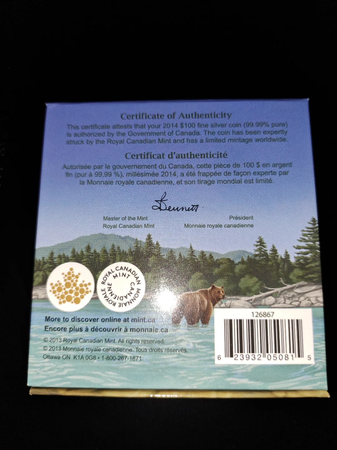 2014 RCM 1 oz silver grizzly