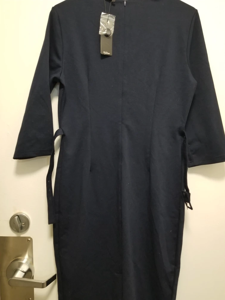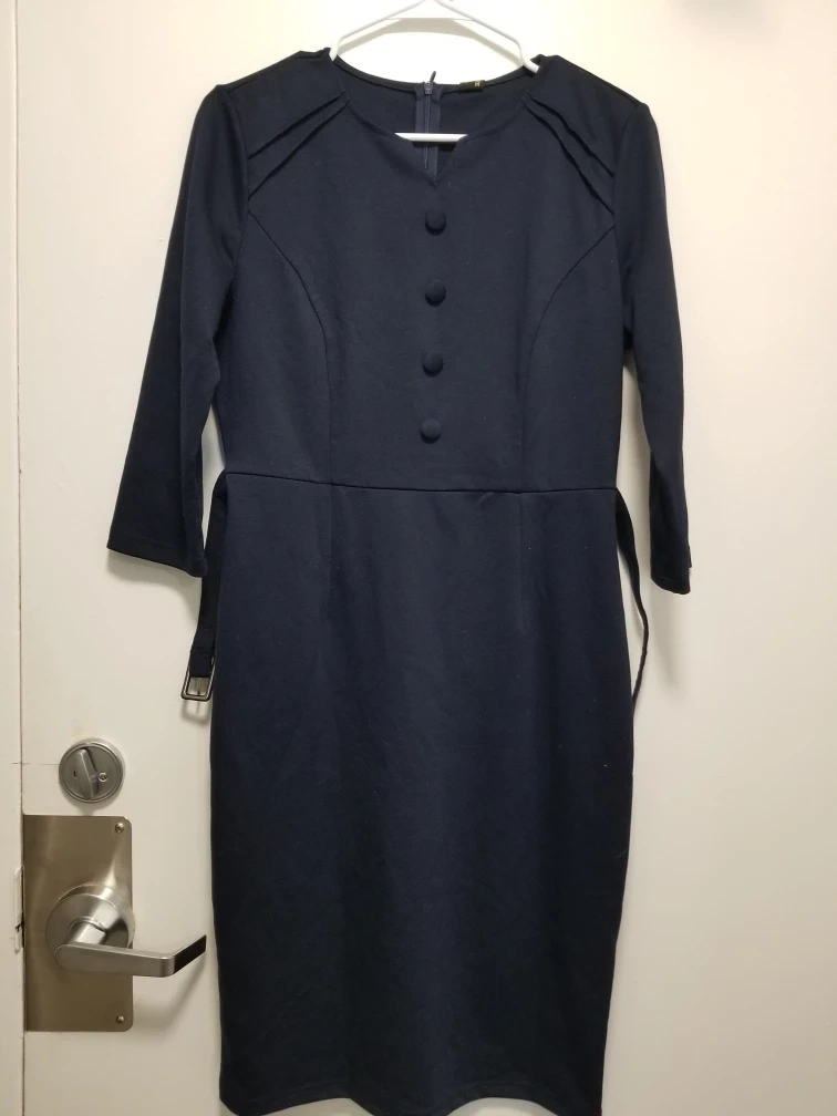 Selling a brand new Yishou dress in navy! It's a size L and has a stylish design with buttons down the front. It also features a belt to cinch the waist. Never worn, still has the tags on!