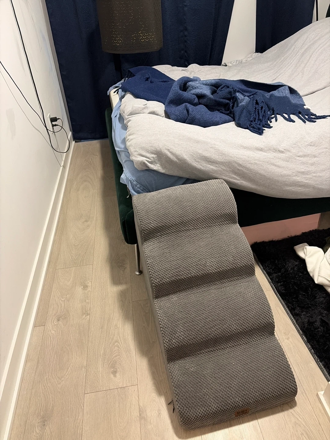 I bought this staircase for my pug, but unfortunately, my pug is too heavy to be able to climb himself up to the bed so it is very much brand new bed as it’s never been used.