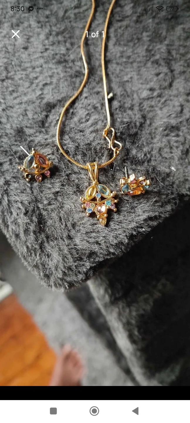Selling a beautiful necklace and earring set! The set includes a necklace and matching earrings. The jewelry features intricate designs and colourful stones. Perfect for adding a touch of elegance to any outfit