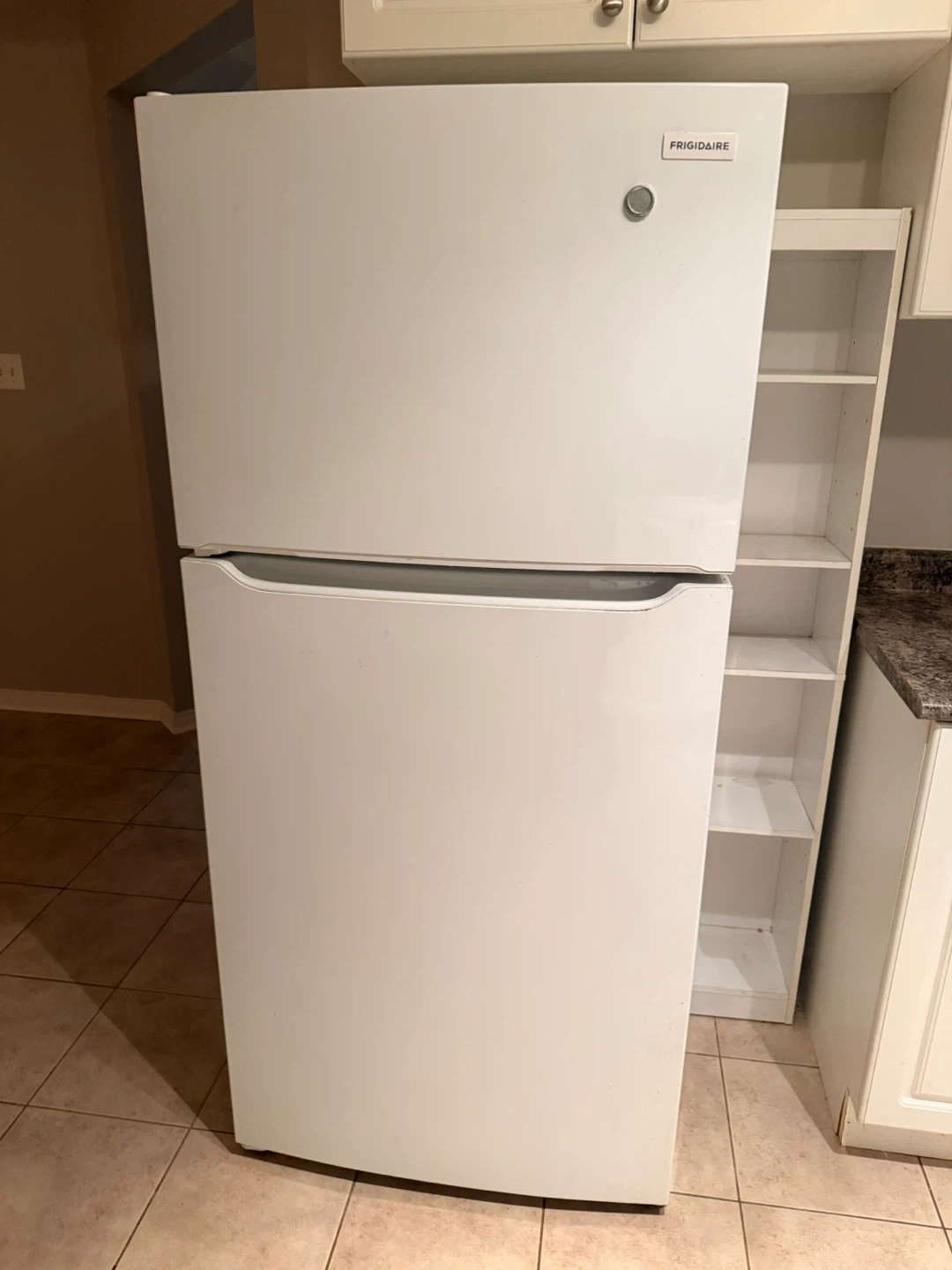 Selling a Frigidaire top-freezer refrigerator in white. It's in good working condition and ready for a new home. Features include adjustable shelves and crisper drawers to keep your food fresh. Perfect for a small family or apartment!