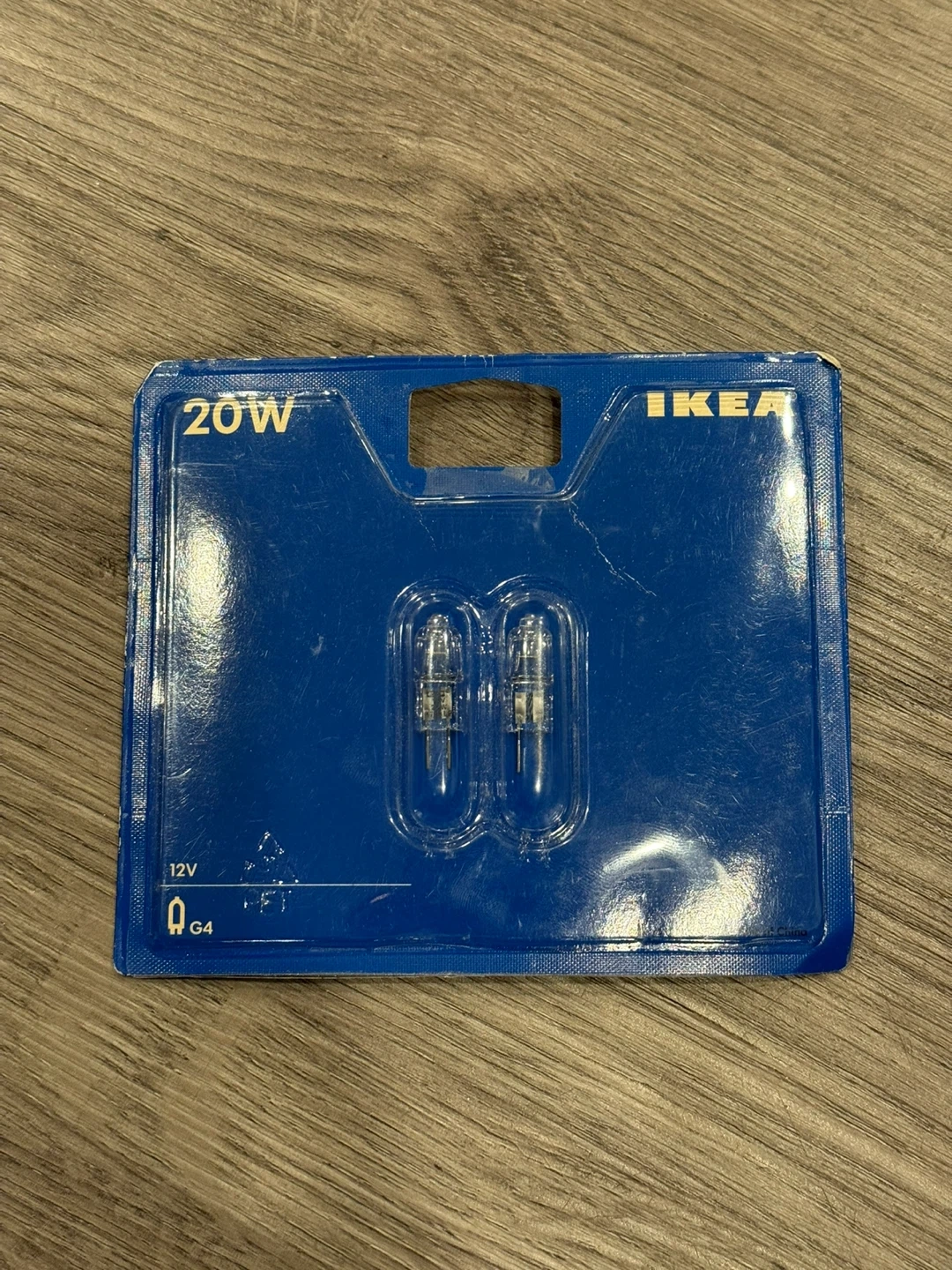 Selling a brand new pack of IKEA light bulbs! These are 20W, 12V G4 bulbs, perfect for various lighting fixtures around the house. Never opened and ready to use. Thank you for visiting my listing!
