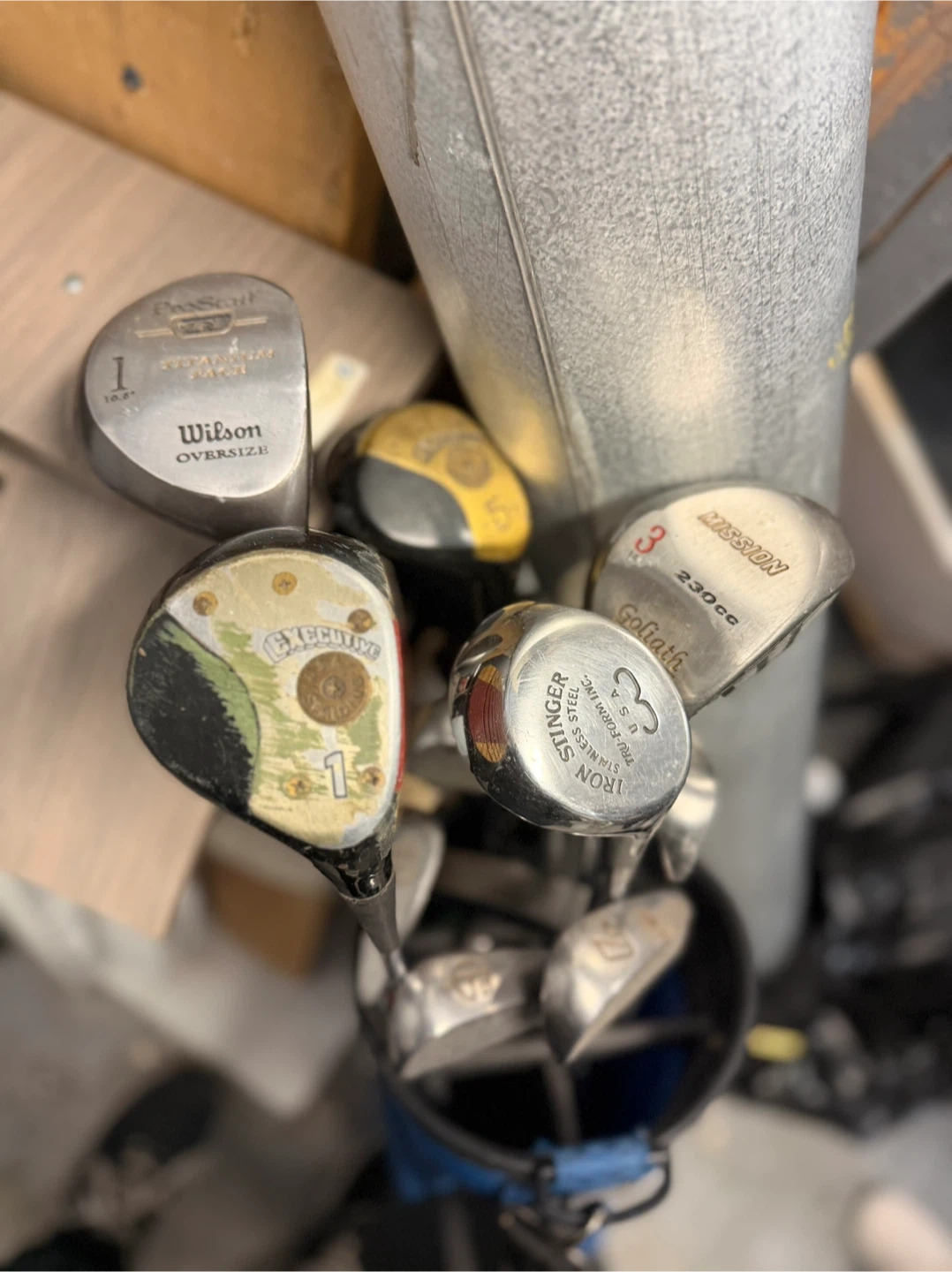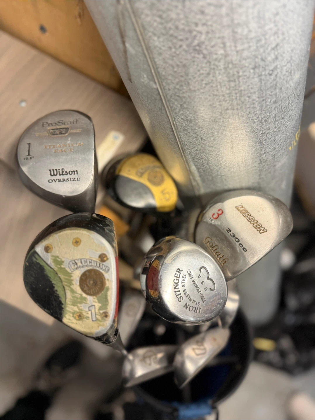 Selling a mixed set of used golf clubs! There's a variety of brands including Wilson, Mission, and Executive. Great for someone looking to get started or add to their collection. They have signs of use, but still have lots of play left in them!
