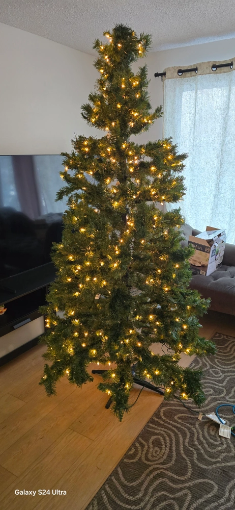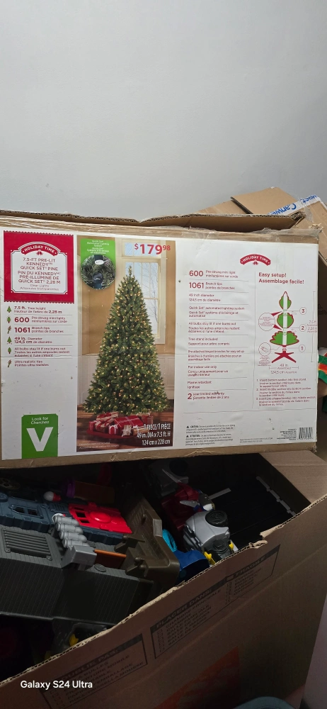 Selling a Holiday Time 7.5ft pre-lit Christmas tree. The box says it's a 7.5ft (2.28 m) Kennedy Quick Set tree with 600 dual colour micro dot lights and 1061 branch tips. Easy to assemble!
