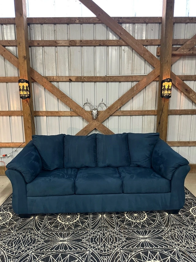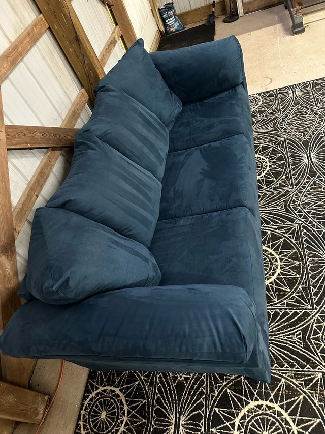 $ 450 Teppermans Microsuede Blue Sofa. ️ Has been professionally shampood and steam cleaned. Info - Removeable bottom cushion covers for easy cleaning. - Barely used the couch is in like new condition. - Strong frame to last for years. - Super comfortable. Dimensions available in photos. Couch and furniture disposal available too. For Sale By: Owner