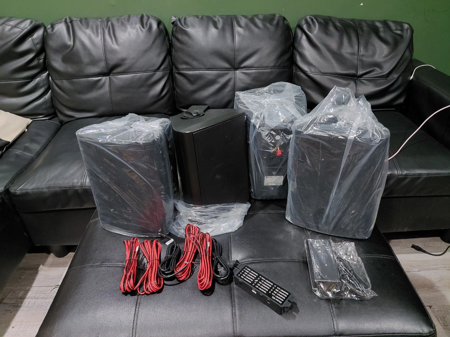 I'm selling a set of outdoor speakers, still sealed in plastic. They include all the necessary cables and accessories for installation and immediate use. Perfect for your patio or garden!