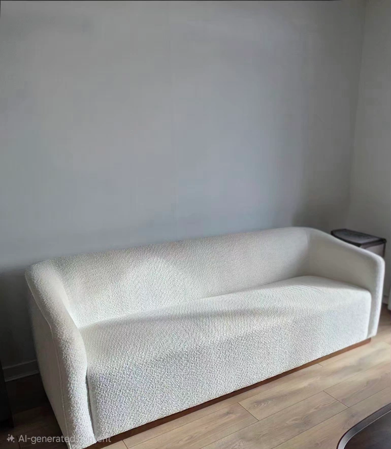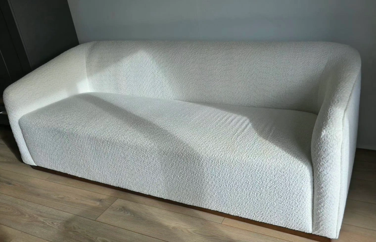 Selling a beautiful white bouclé sofa! It's in great condition and would look lovely in any living space. The texture is soft and inviting, perfect for relaxing after a long day. It's a stylish and comfortable piece of furniture that will add a touch of elegance to your home