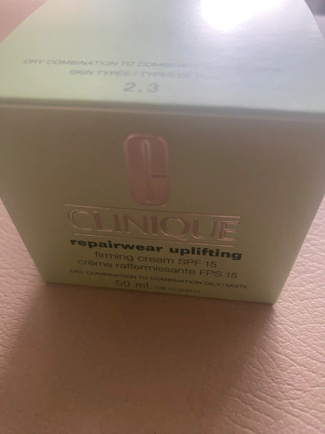 Clinique Repairwear Uplifting Firming Cream SPF 15. It's for dry combination to combination oily/mixte skin types 2,3. The box contains 50 ml of product. It comes with a Clinique Chubby Stick High Impact Mascara and BB cream. Great for your skincare routine!