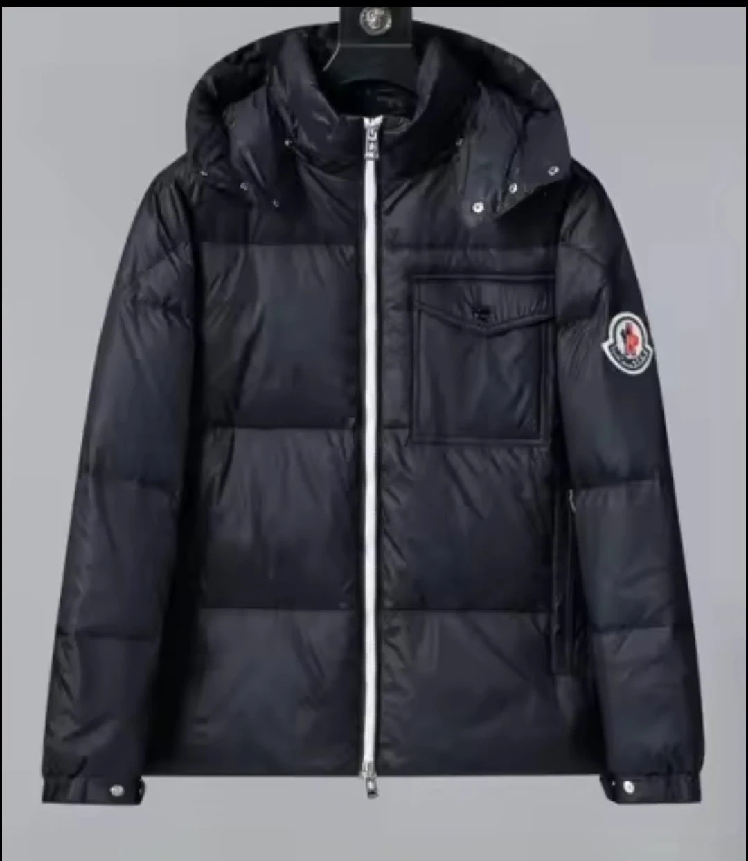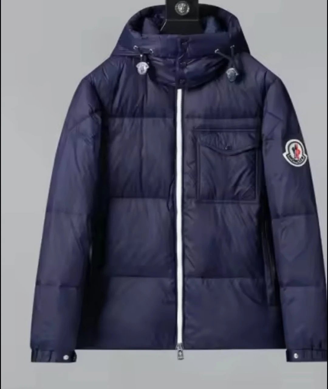 Selling a Moncler padded down jacket in navy blue and black. It's new and ready to keep you warm this winter!