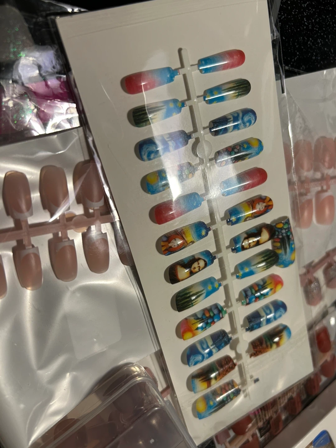 A variety of press on nails for a quick and easy manicure! Includes different colours and designs for any occasion totally 7packs more than 100 nails