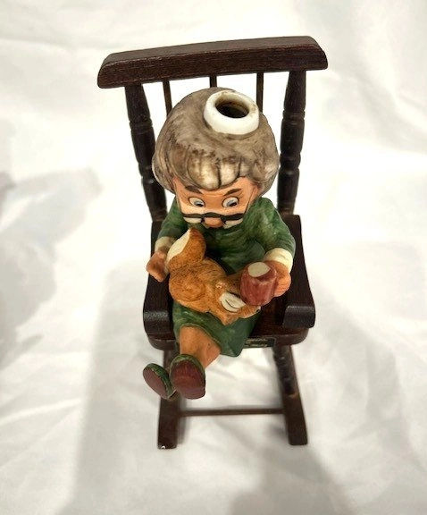 Vintage 1980s National Hoffman "Mr. Lucky & Mrs. Lucky Retired" with Wood Rocking Chair $45